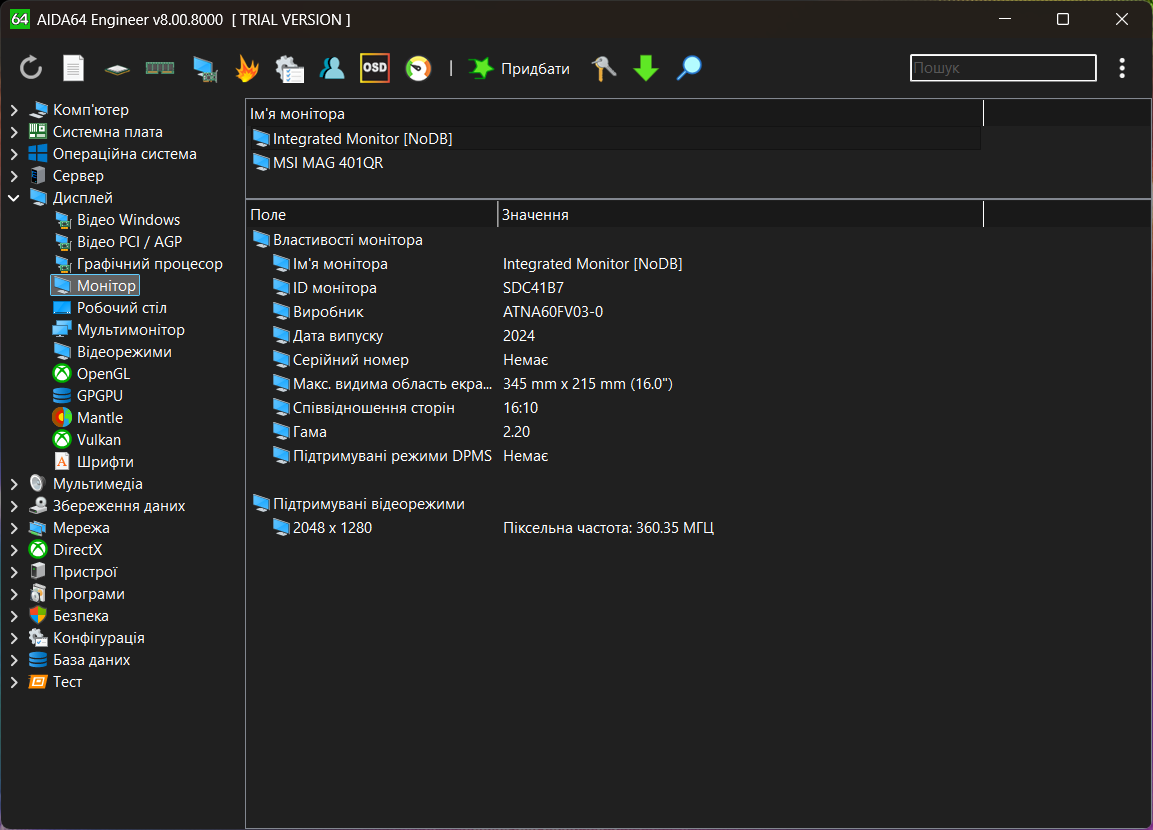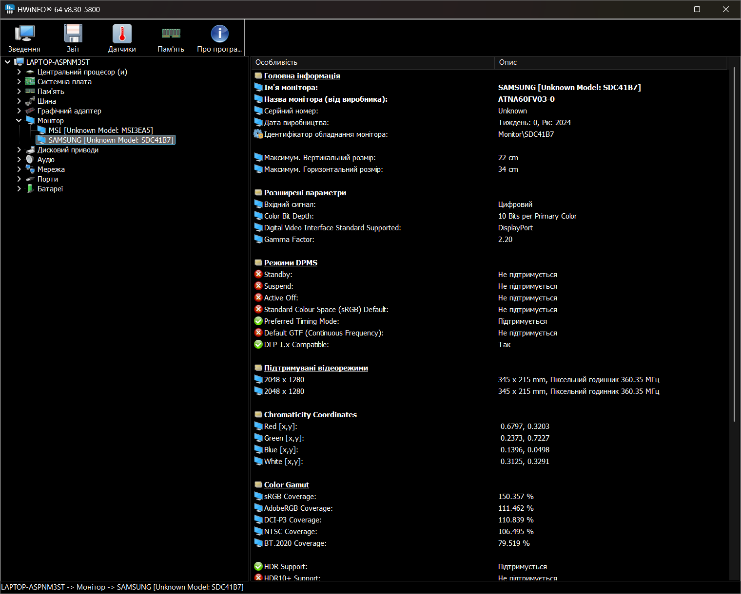 Диагностические программы видят этот ноутбук следующим образом:
