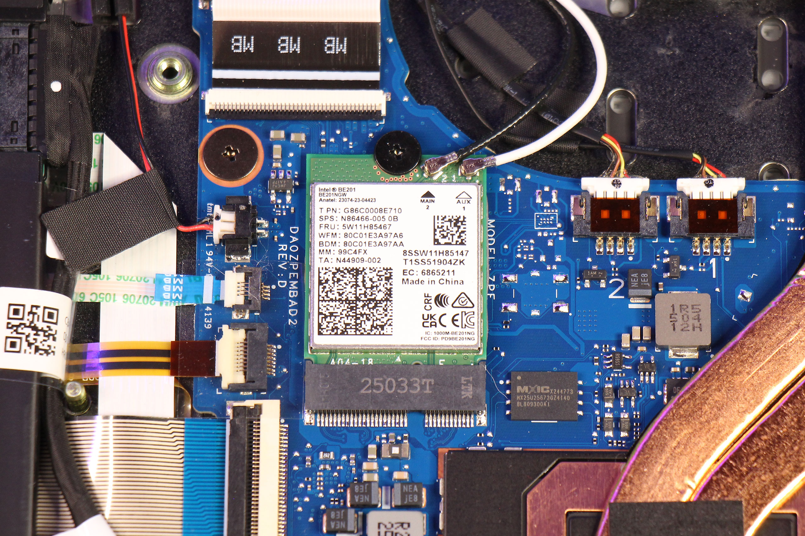 Беспроводной модуль Intel BE201 поддерживает новейшие стандарты Wi-Fi 7 и Bluetooth 5.4, обеспечивая высокие скорости и низкие задержки в современных сетях. Поддержка Wi-Fi 7 особенно важна для будущей совместимости с новыми роутерами.