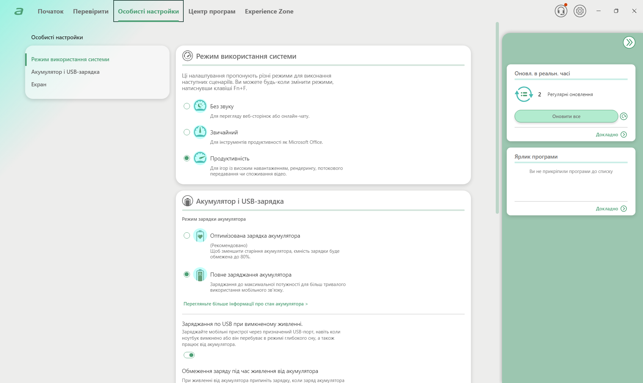 Архитектура Intel Lunar Lake с фокусом на энергоэффективность определяет низкий термальный профиль Aspire 16 AI. Система охлаждения оптимизирована для тихой работы при типичных нагрузках, что делает ноутбук комфортным для офисного использования. Acer предлагает три профиля: «Производительность», «Обычный» и «Без звука», которые активируются как для питания от сети, так и для работы от батареи.