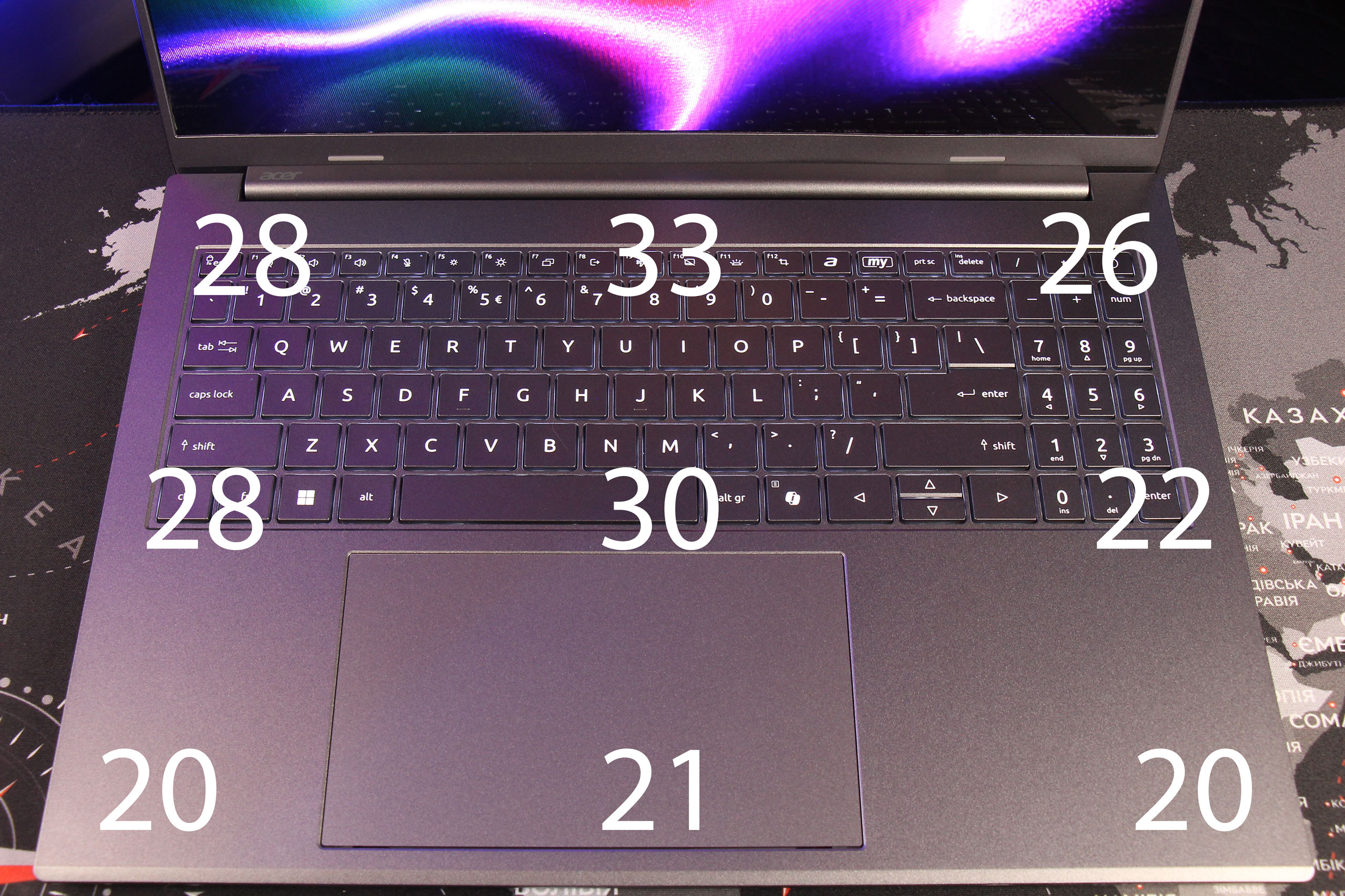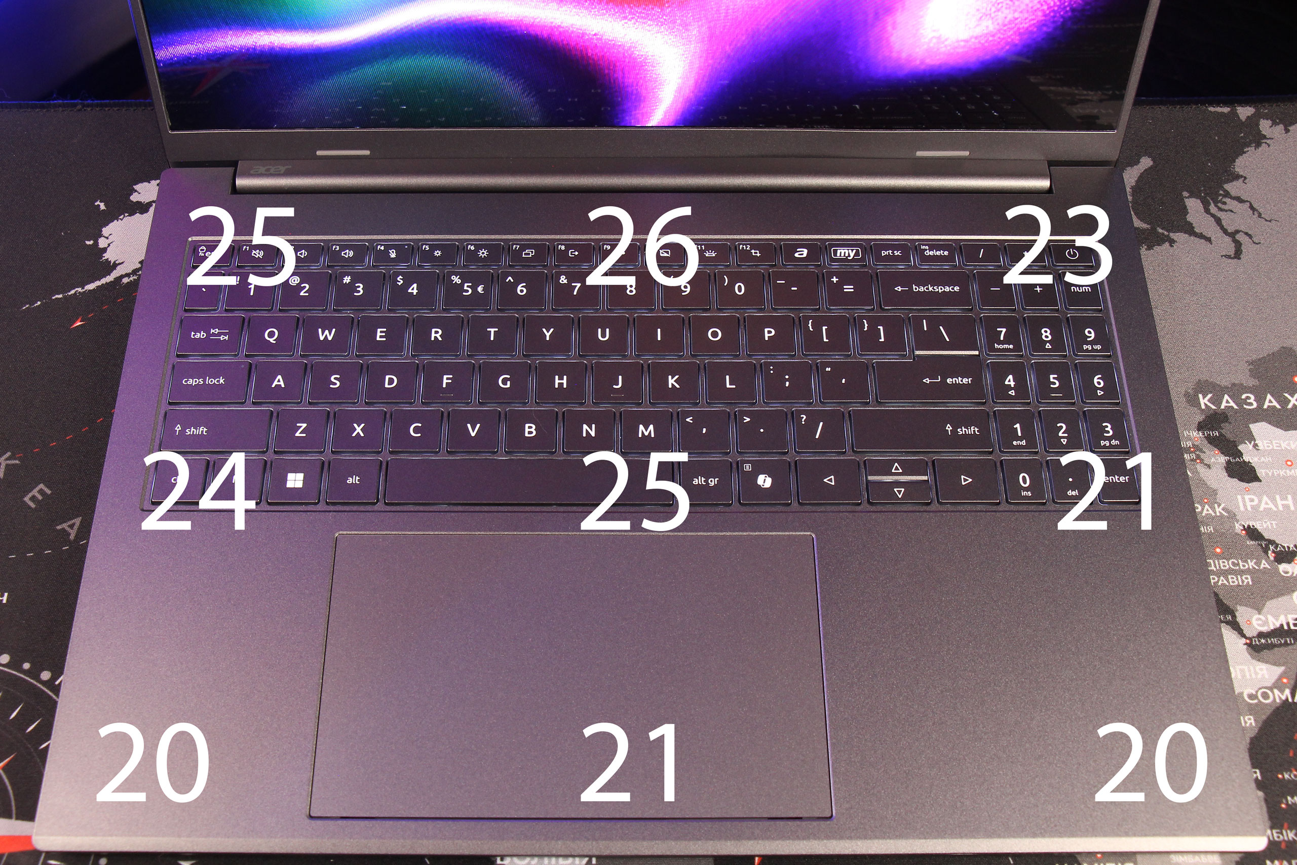 Частота 120 Гц обеспечивает плавность изображения при скроллинге и просмотре динамического контента. В принципе, это также важно для игр, но в ноутбуке с интегрированным графическим ядром этот аспект всегда под большим вопросом и ниже мы его раскроем. Впрочем, есть смысл отметить сразу мудрость Acer: разрешение 2048×1280, к тому что в ноутбучном формате 16″ является еще вполне приемлемым с точки зрения размера пикселя, также существенно помогает GPU справиться с рендерингом. Так что, определенные надежды на Intel Arc Graphics 140V в такой конфигурации тоже есть.