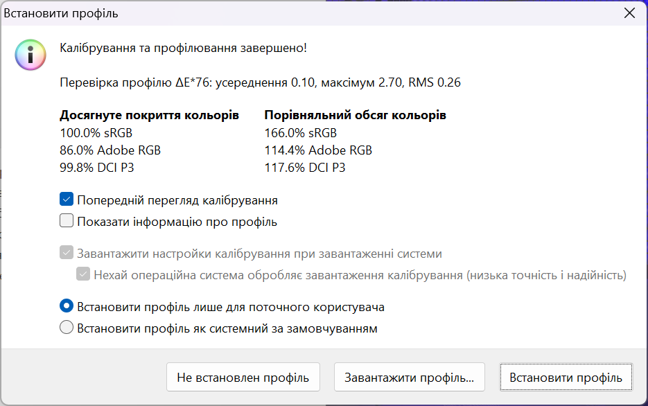 Посмотрим на возможности матрицы, для чего воспользуемся прибором SpyderX Pro и программами DisplayCAL с Argyll и HCFR Colormeter. Яркость была установлена на уровне 123 кд/м², что соответствует 29% от максимального значения для интегрированного графического ядра (для дискретной карты снять показатели не удалось из-за постоянного появления ошибки в ПО).