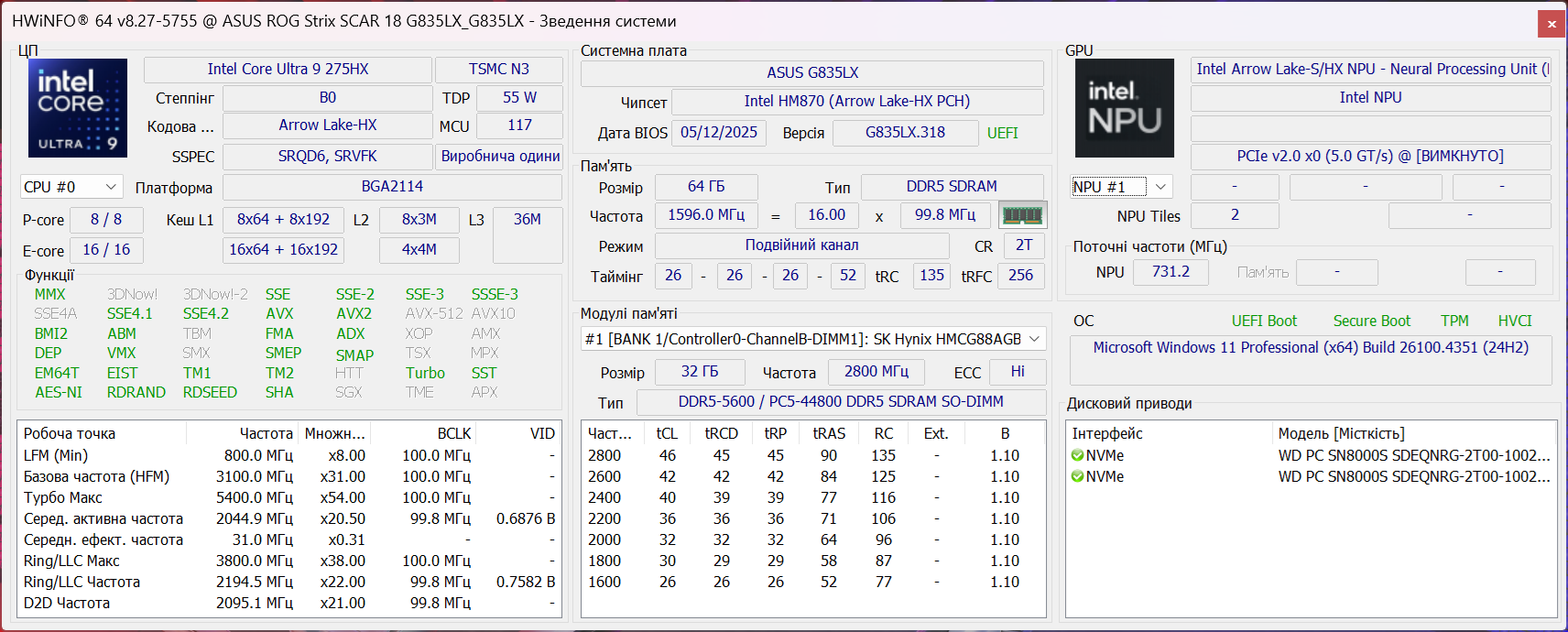 Производители продолжают обновлять модельный ряд своих ноутбуков, используя в них новейшие процессоры и видеокарты. Компания ASUS тоже не осталась в стороне и представила свои варианты на втором поколении Intel Core Ultra и NVIDIA GeForce RTX 50. Один из них — ROG Scar 18 (2025) G835, который на их базе получился довольно мощным, что неудивительно учитывая почти топовый CPU и видеокарту GeForce RTX 5090. Последняя интересна объемом встроенной памяти, полезным при работе в некоторых приложениях.