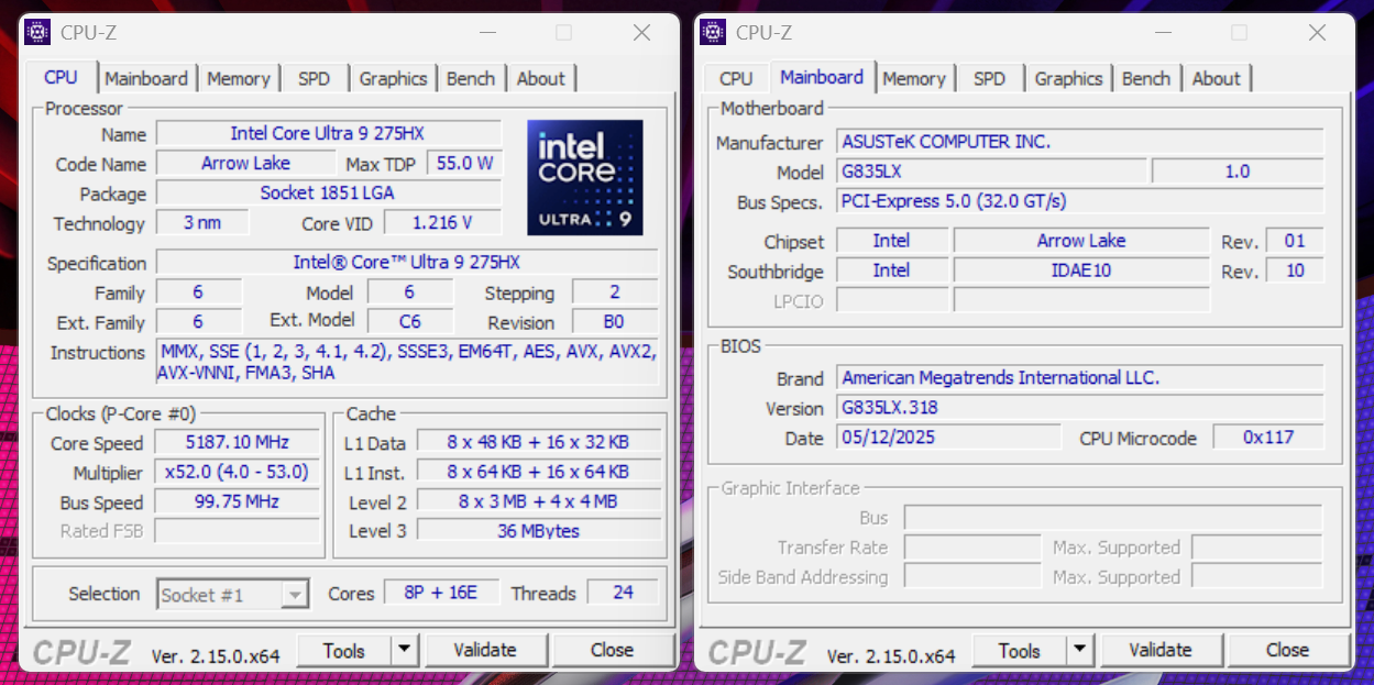 | Процессор | Intel Core Ultra 9 275HX (8+16 ядер/24 потока, 3,1 ГГц, до 5,4 ГГц в Boost-режиме) |