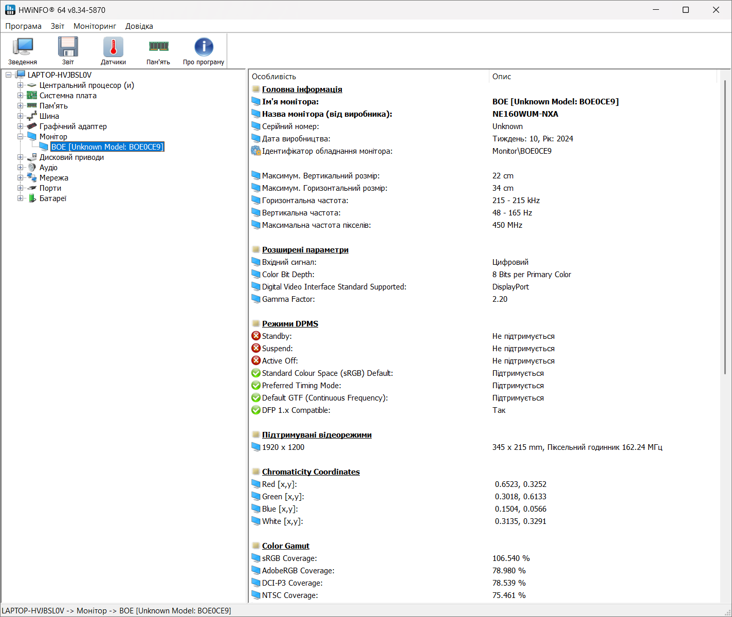 Согласно обещаниям производителя, панель охватывает 100% sRGB и 75,35% Adobe RGB. Фактические замеры продемонстрировали следующее: