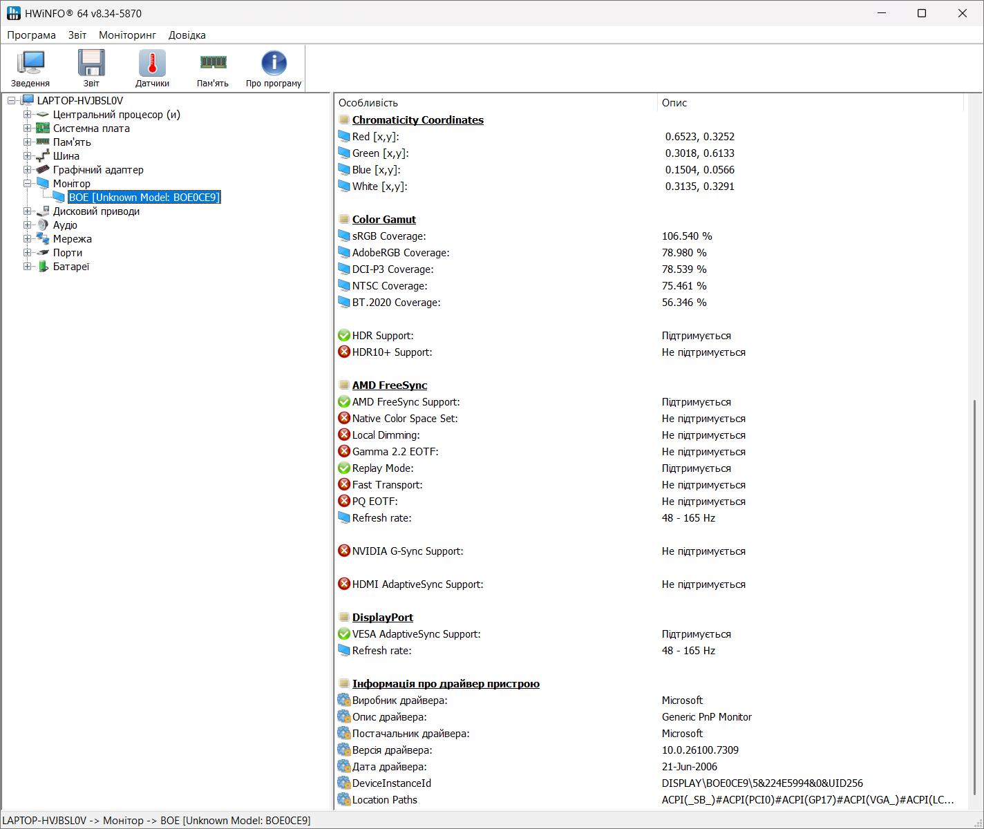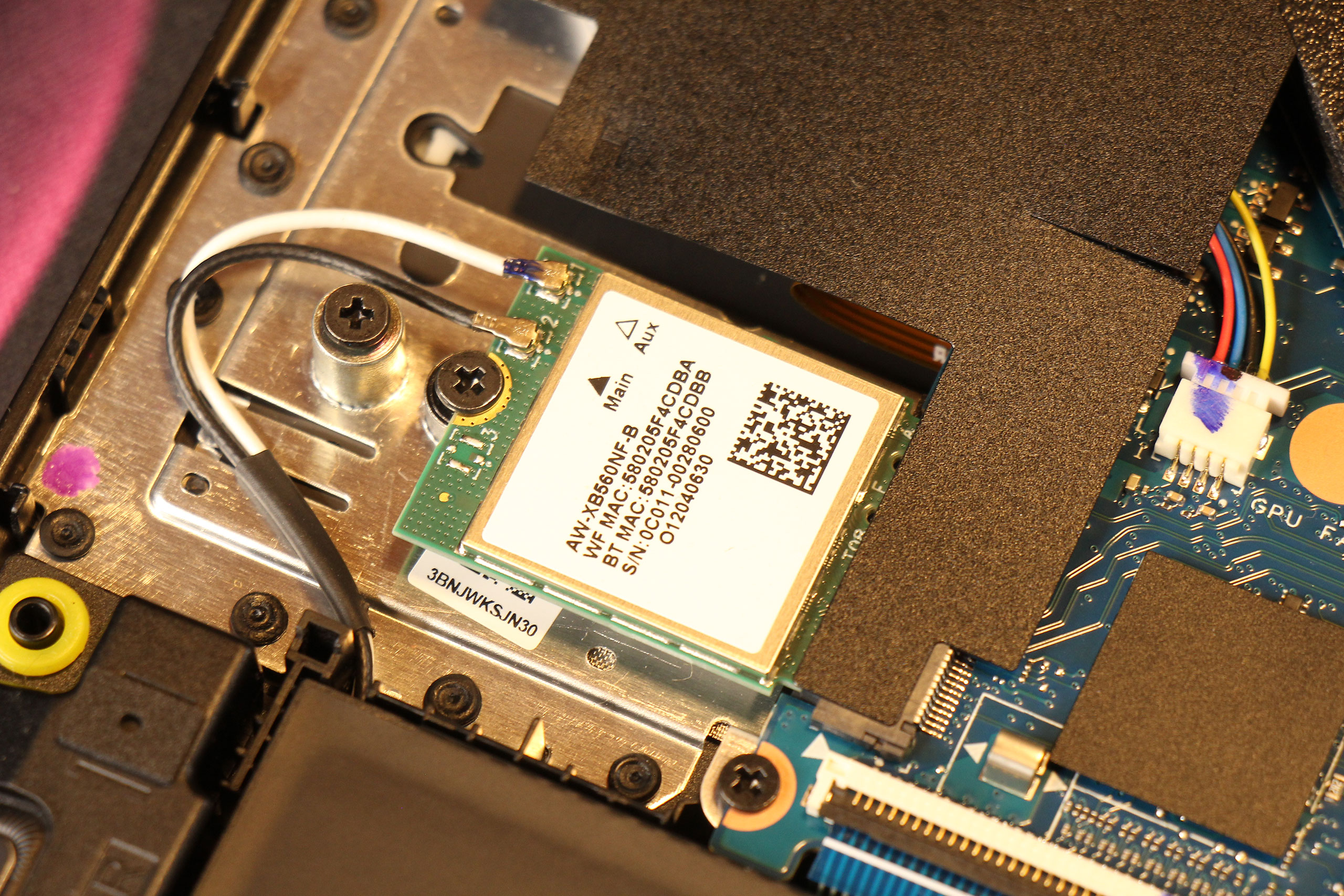 За беспроводные соединения отвечает комбинированный адаптер Azurewave AW-XB560NF с поддержкой 802.11a/b/g/n/ac/ax Wi-Fi и Bluetooth 5.3 (в официальных спецификациях ноутбука на сайте указано 5.2 с возможным обновлением).