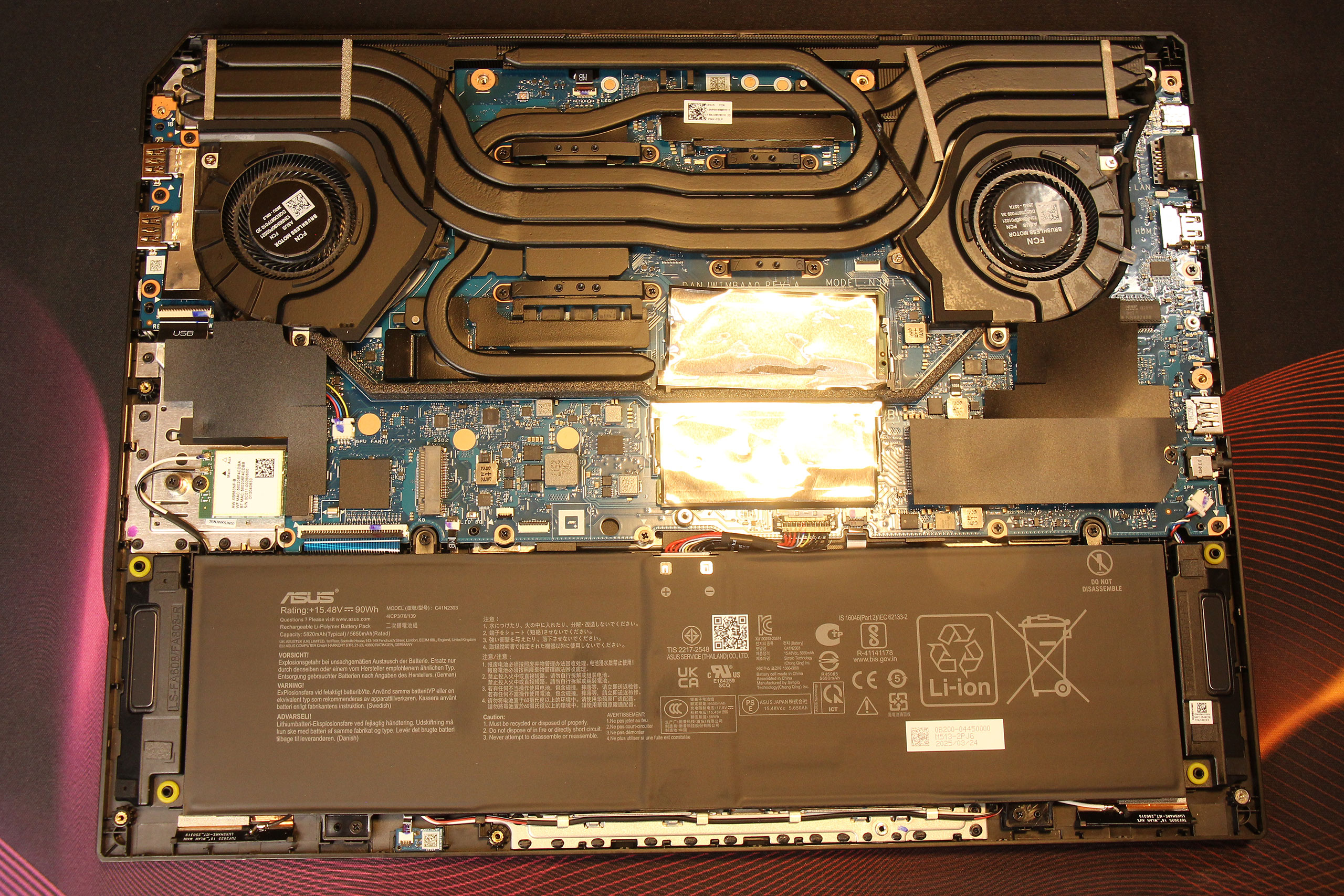 То же самое касается SSD. Присутствует минимальный на сегодня накопитель NVMe PCIe 4.0 емкостью 512 ГБ (WD PC SN5000S SDEQNSJ-512G-1002), и есть второй слот M.2 для расширения. В результате, цена устройства более привлекательная, а возможности можно нарастить в будущем — хотя, такой объем для геймерского ноутбука выглядит мизерным, даже во время тестирования было неудобно деинсталлировать игры, чтобы установить следующие.