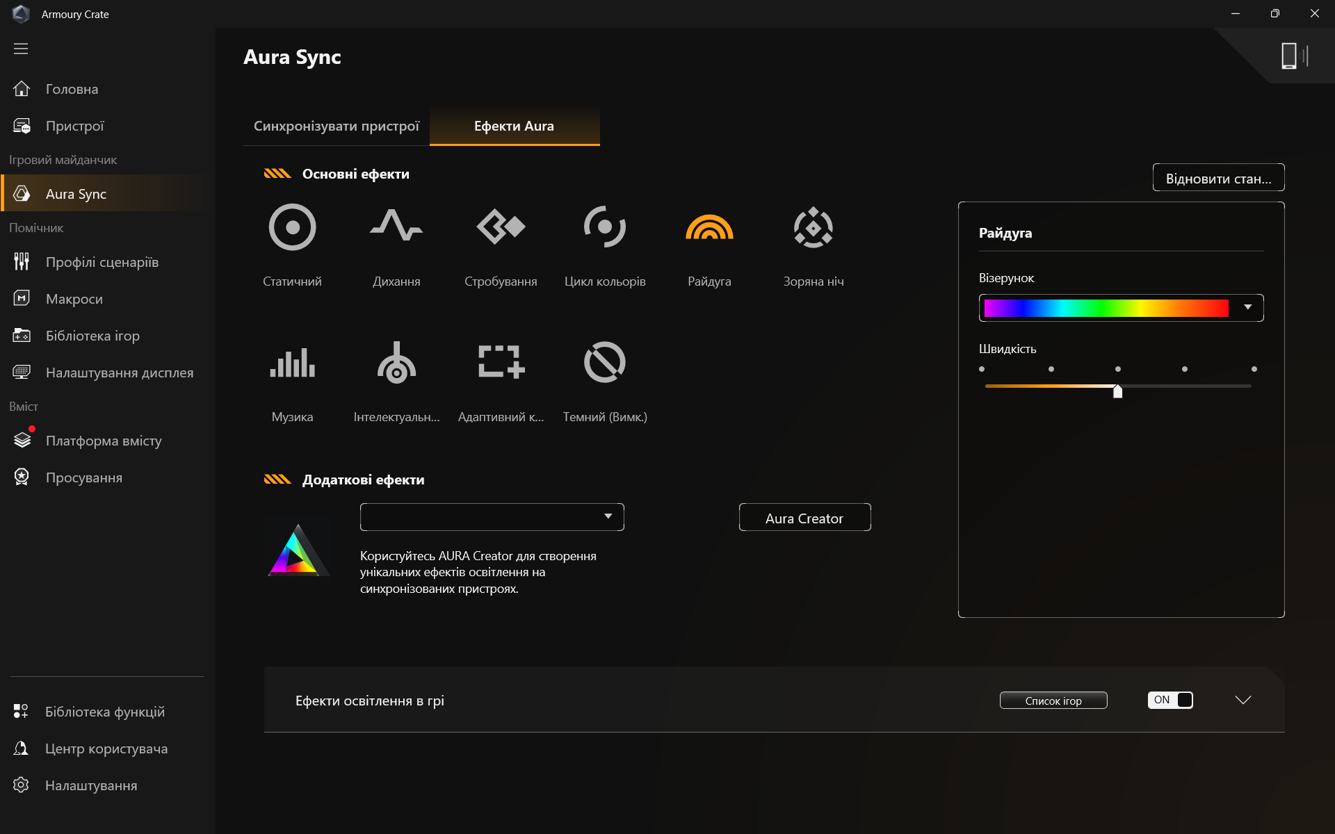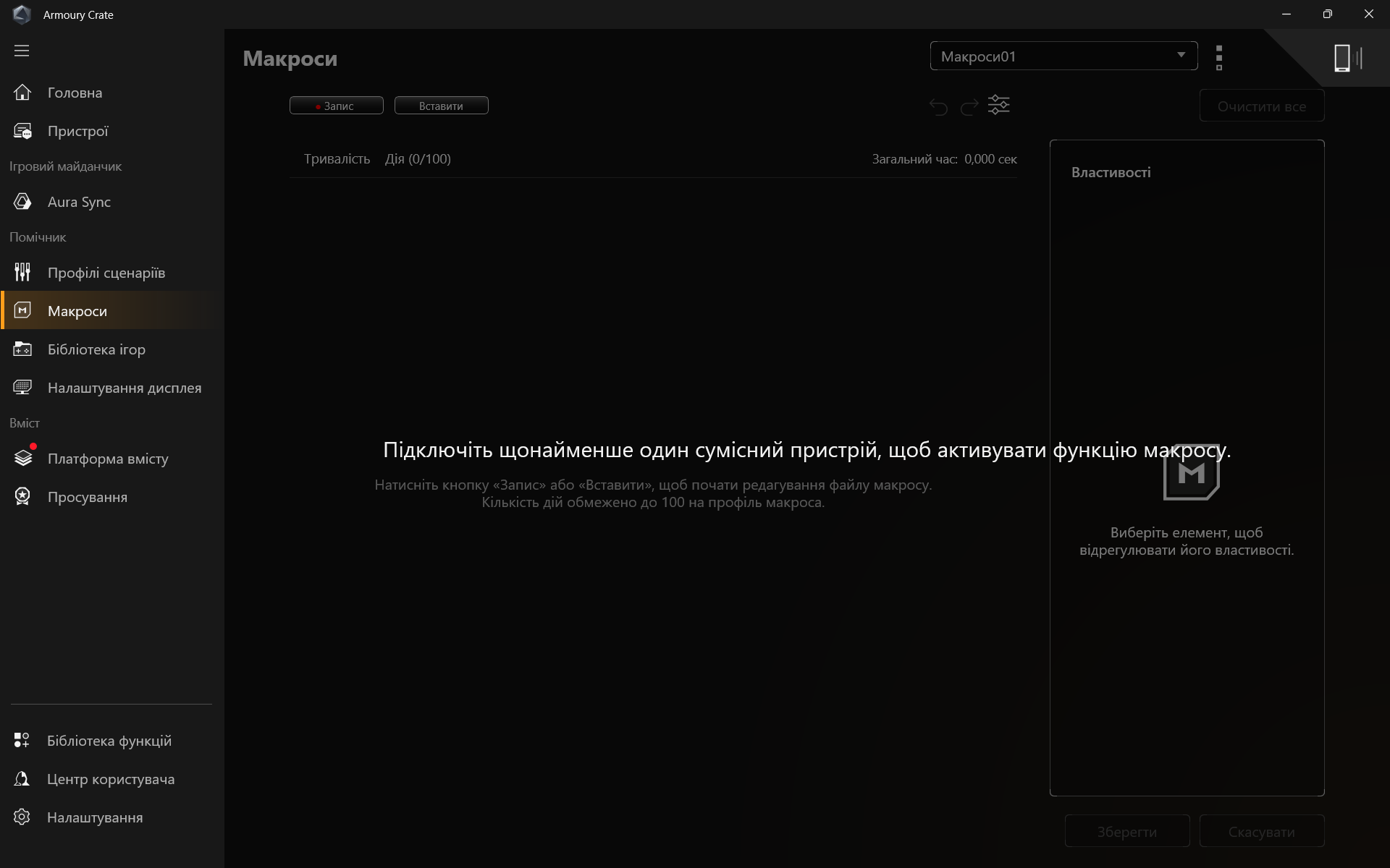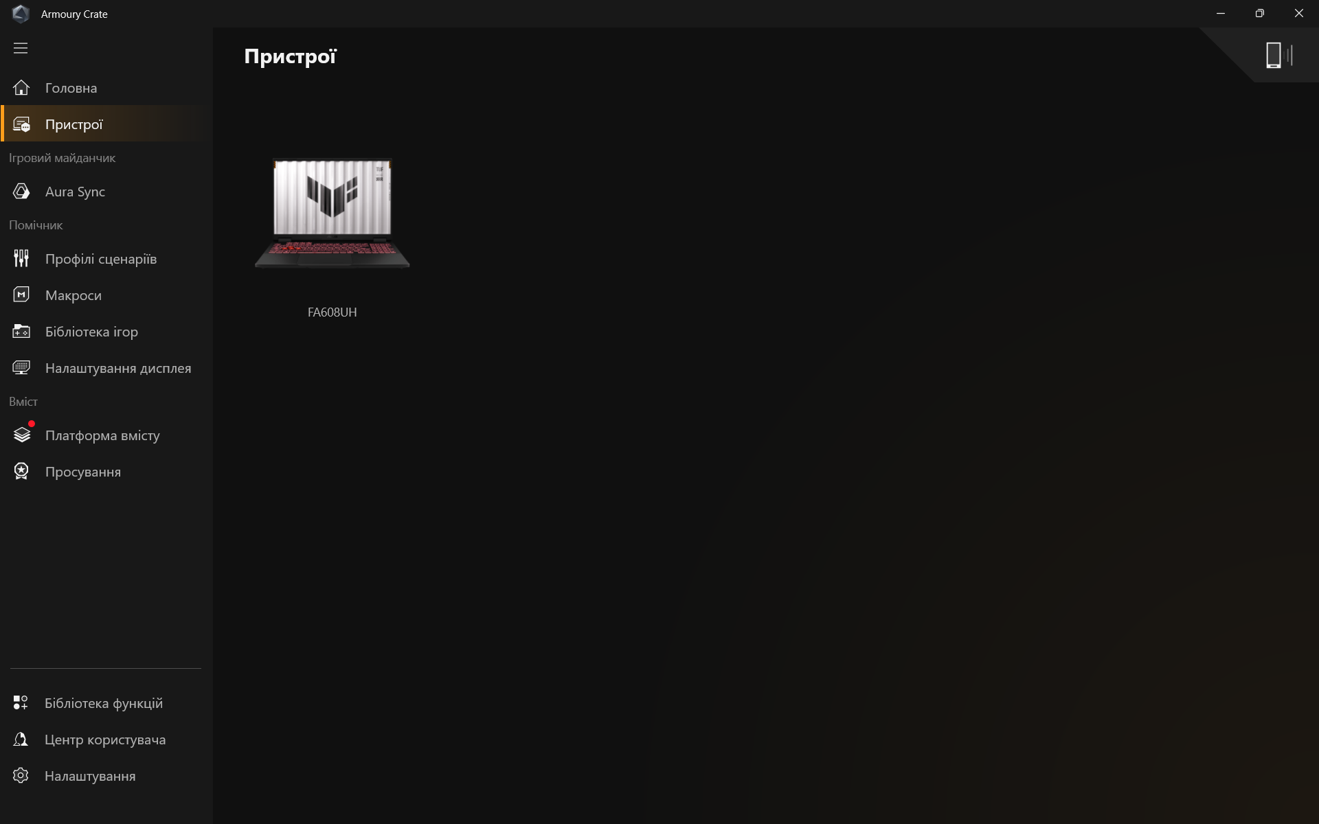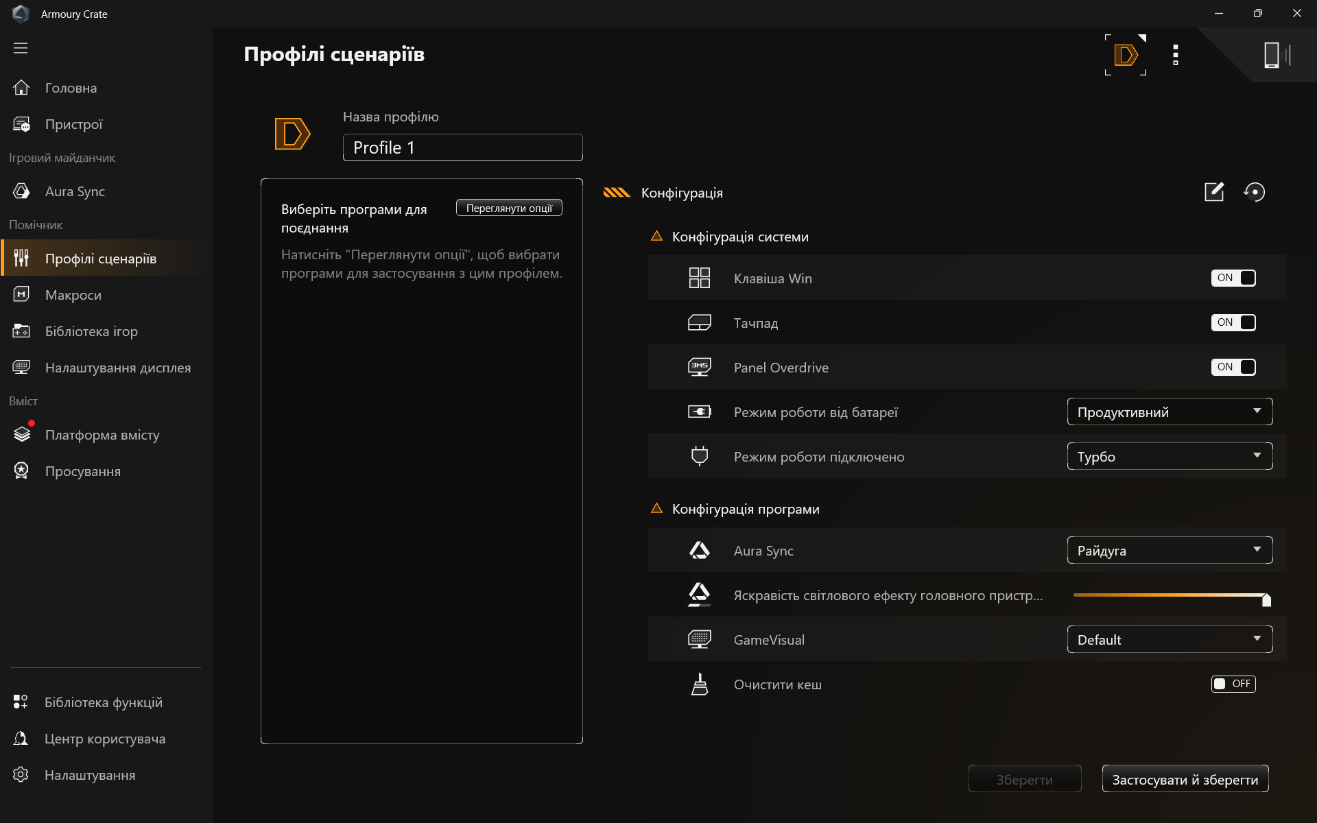 Ноутбук номинально поставляется без предустановленной ОС (то есть, Windows 11 устанавливается отдельно). Утилита ASUS Armoury Crate управляет профилями производительности (Silent/Performance/Turbo), RGB-подсветкой клавиатуры, мониторингом системы и профилями GameVisual. При наличии совместимой клавиатуры или мыши, разблокируется также возможность записывать и назначать макросы.