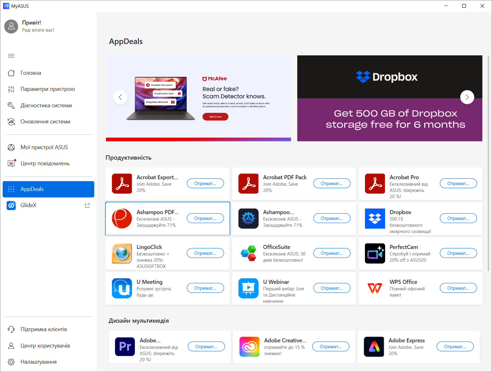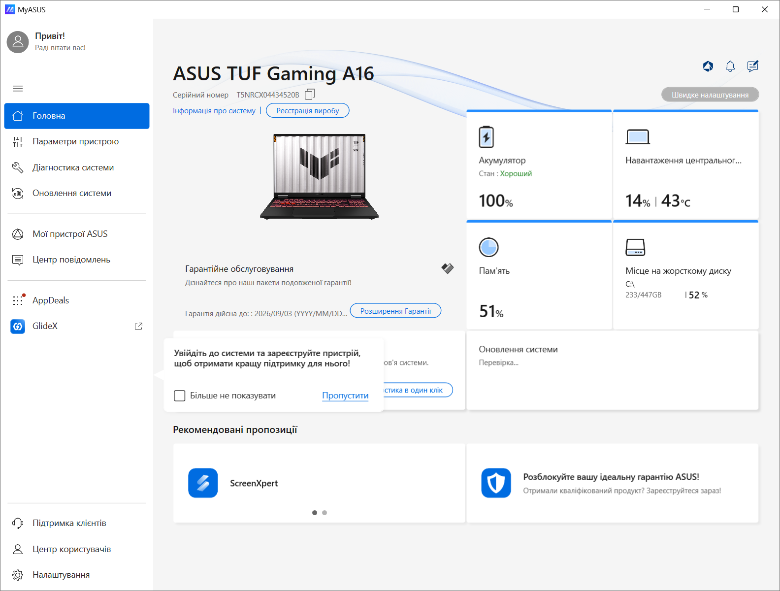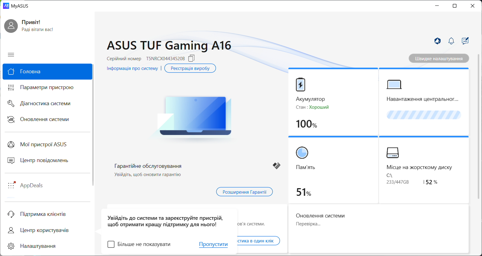Некоторые возможности ноутбука также настраиваются через более распространенное приложение MyASUS — например, шумоподавление. Интересно, что в MyASUS есть ссылка на открытие Armoury Crate, но не наоборот, хотя обе утилиты выполняют разные функции и не пересекаются.