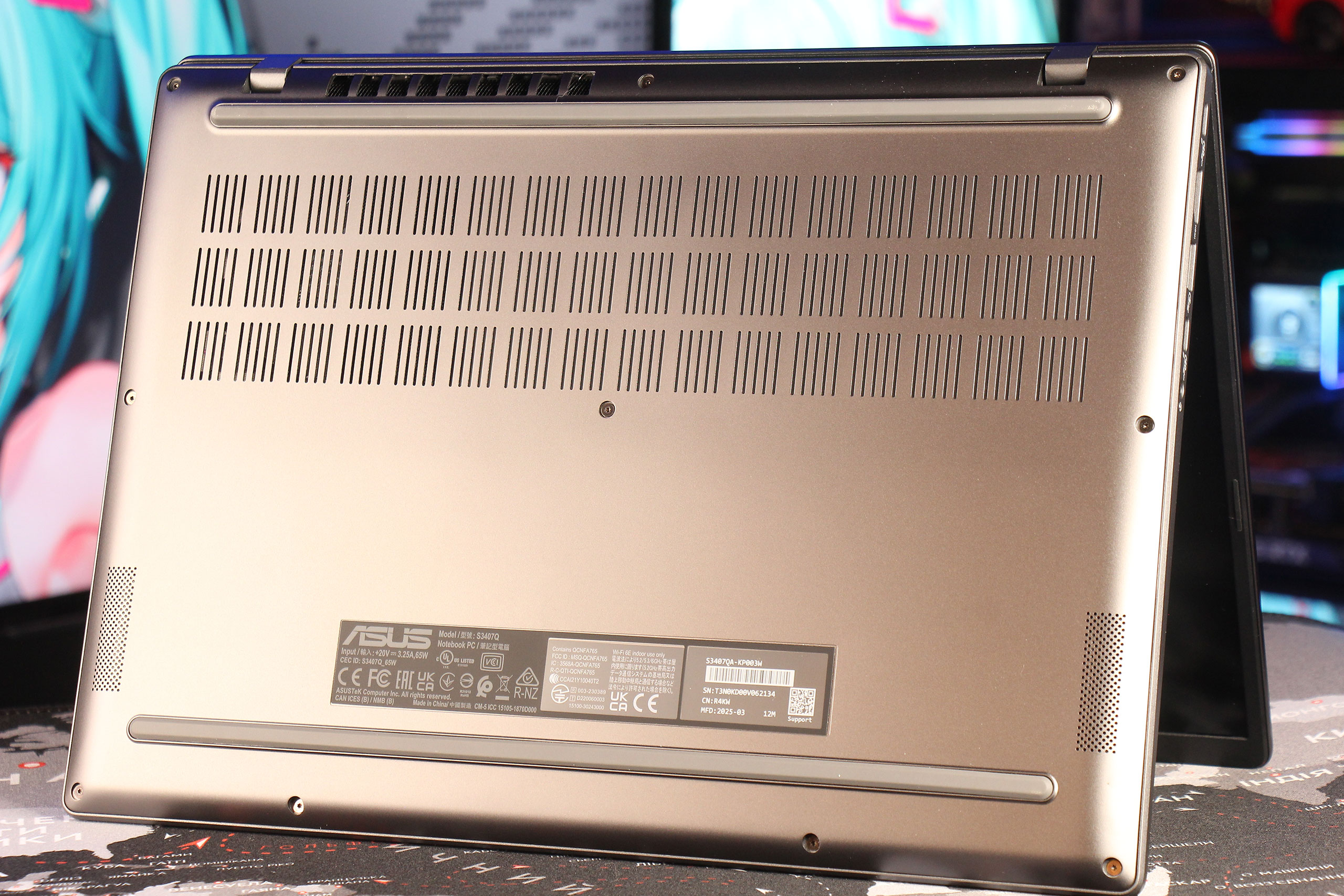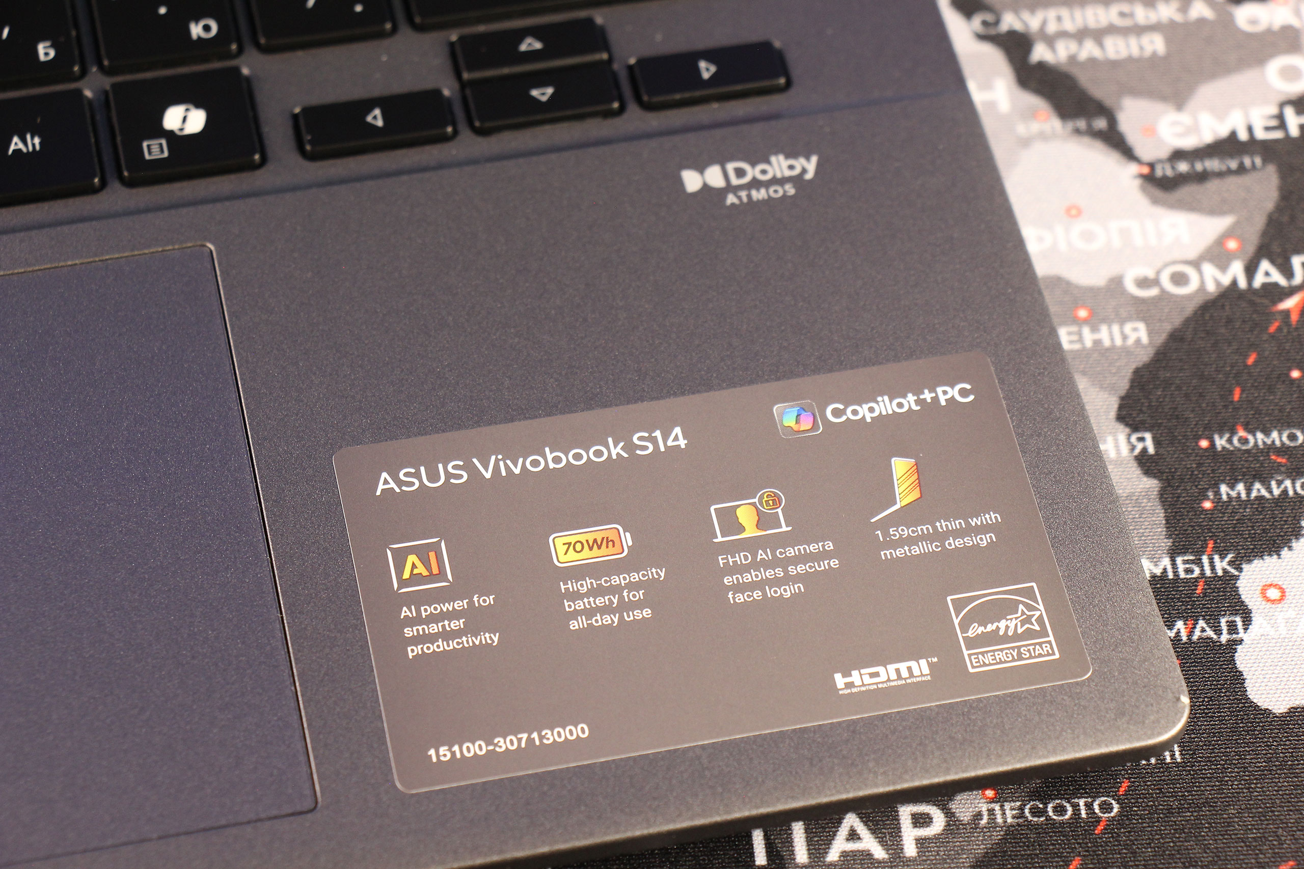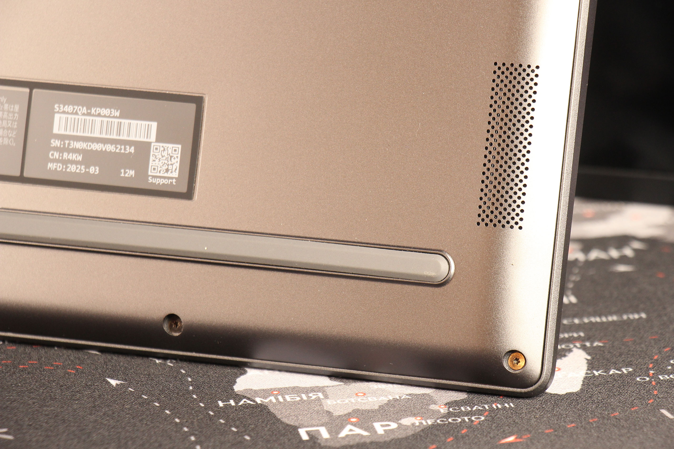 Согласно сайту производителя, существуют разные комплектации ASUS Vivobook S14, причем не только в таких деталях, как емкость SSD (512 ГБ или 1 ТБ). Самой принципиальной разницей может стать дисплей, ведь есть вариант с IPS-матрицей, имеющей разрешение 2560×1600 пикселей, а есть версия с Full HD, но OLED. Впрочем, на рынке Украины по состоянию на момент обзора присутствует лишь одна разновидность с индексом S3407QA-KP003W. Она имеет IPS-дисплей, процессор Snapdragon X X1-26–100 и 512 ГБ SSD.