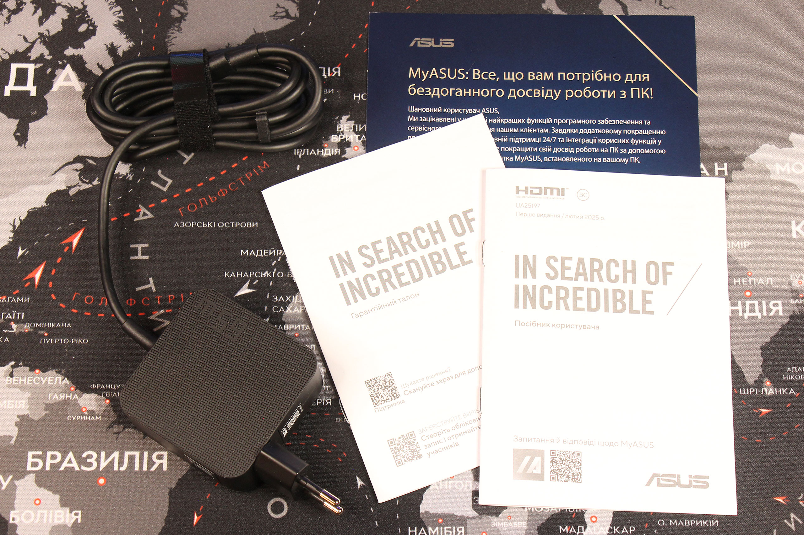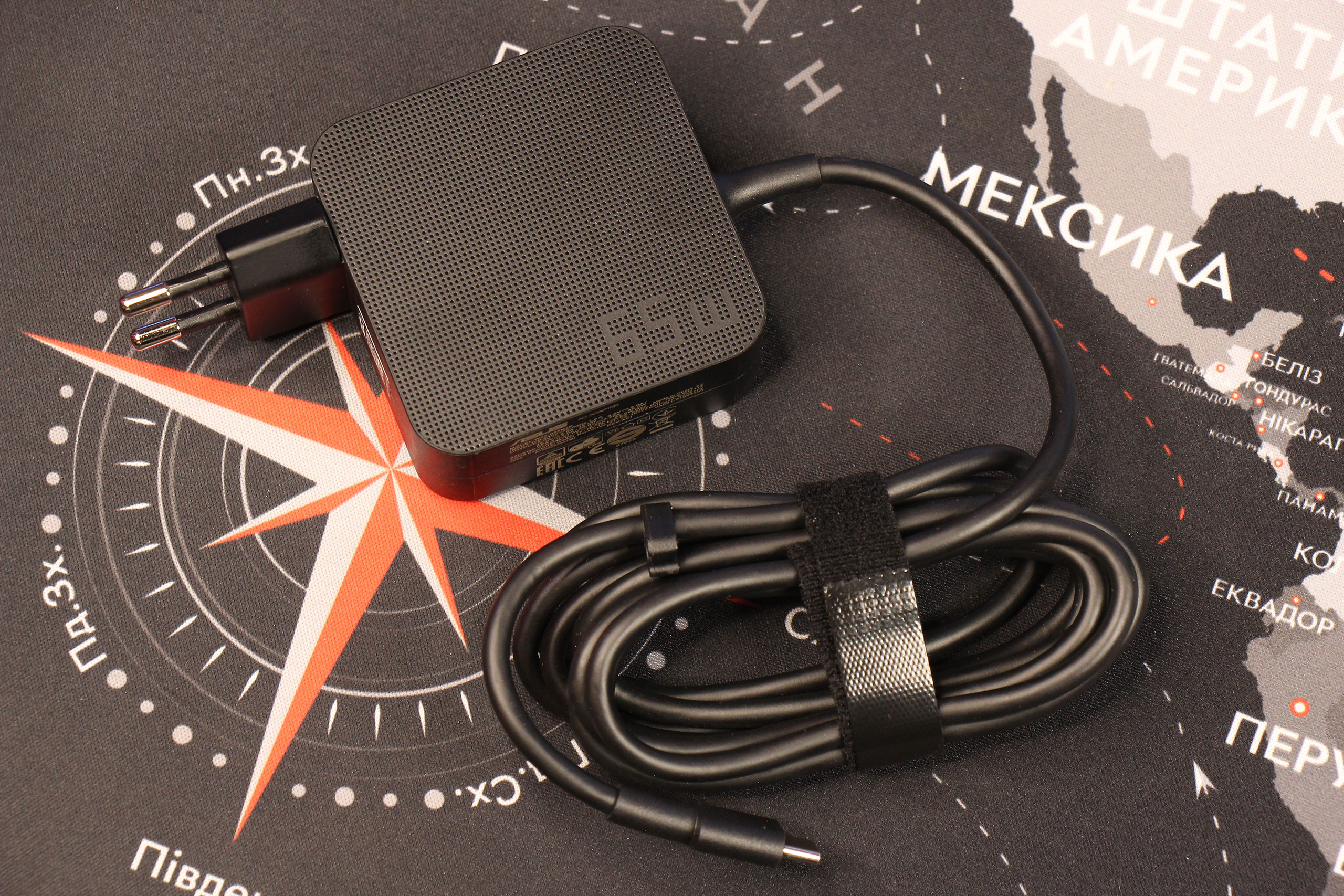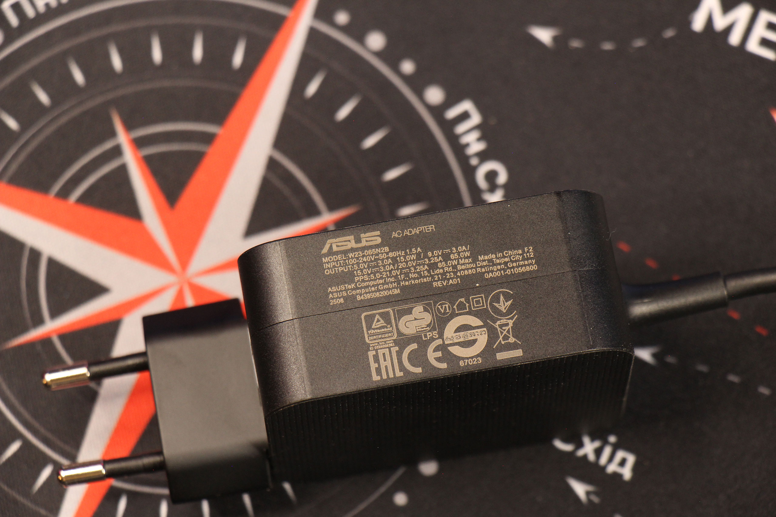 Компактный блок питания собственного производства ASUS в комплекте с Vivobook S14 имеет мощность 65 Вт и несъемный кабель USB‑C.
