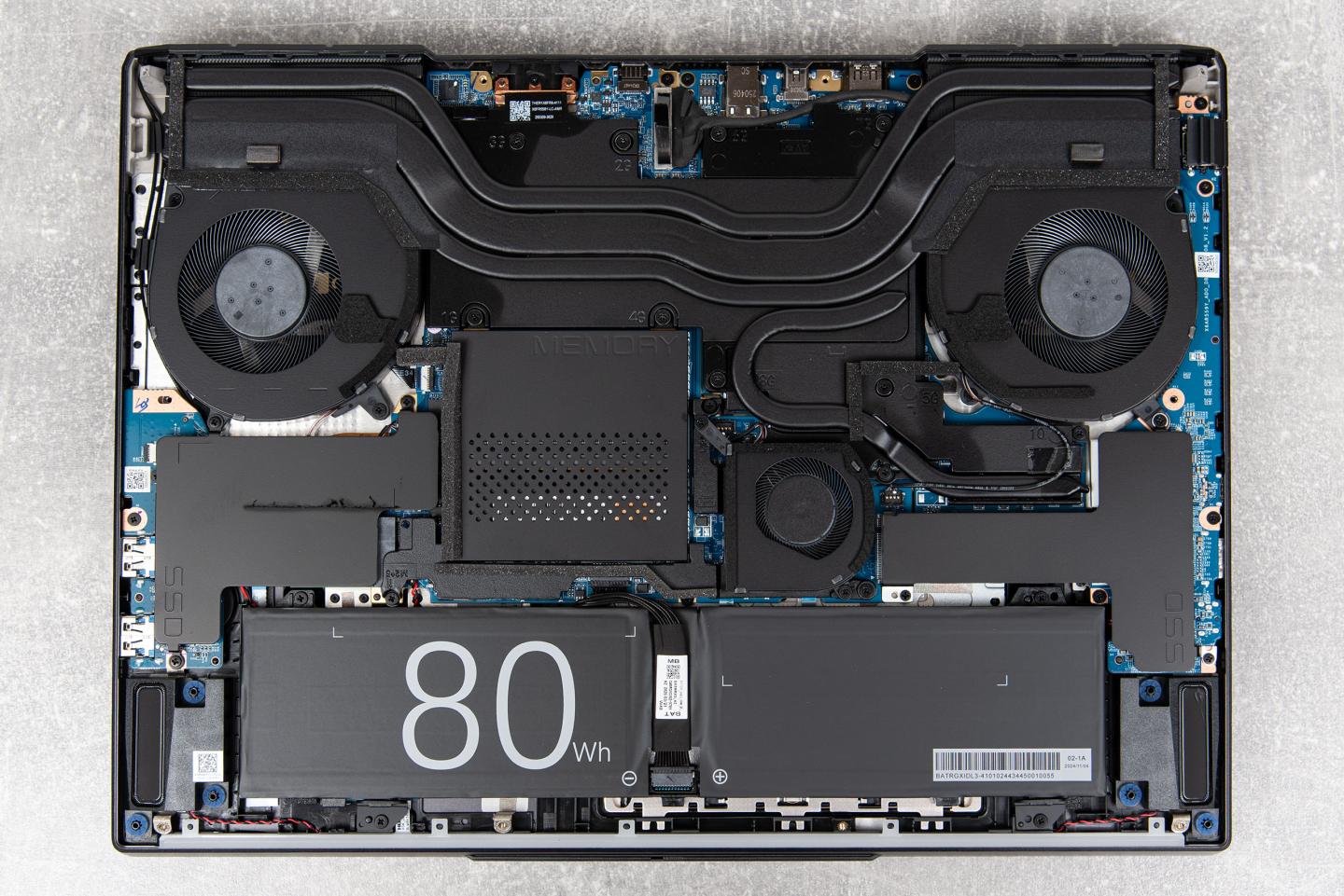 Лэптоп оснащен 16-дюймовой матрицей IPS с Mini LED и разрешением 2560×1600 точек. Частота обновления может достигать 300 Гц при использовании дискретной видеокарты или 240 Гц в гибридном режиме. Экран матовый, что должно снизить эффект отражений окружающих предметов.