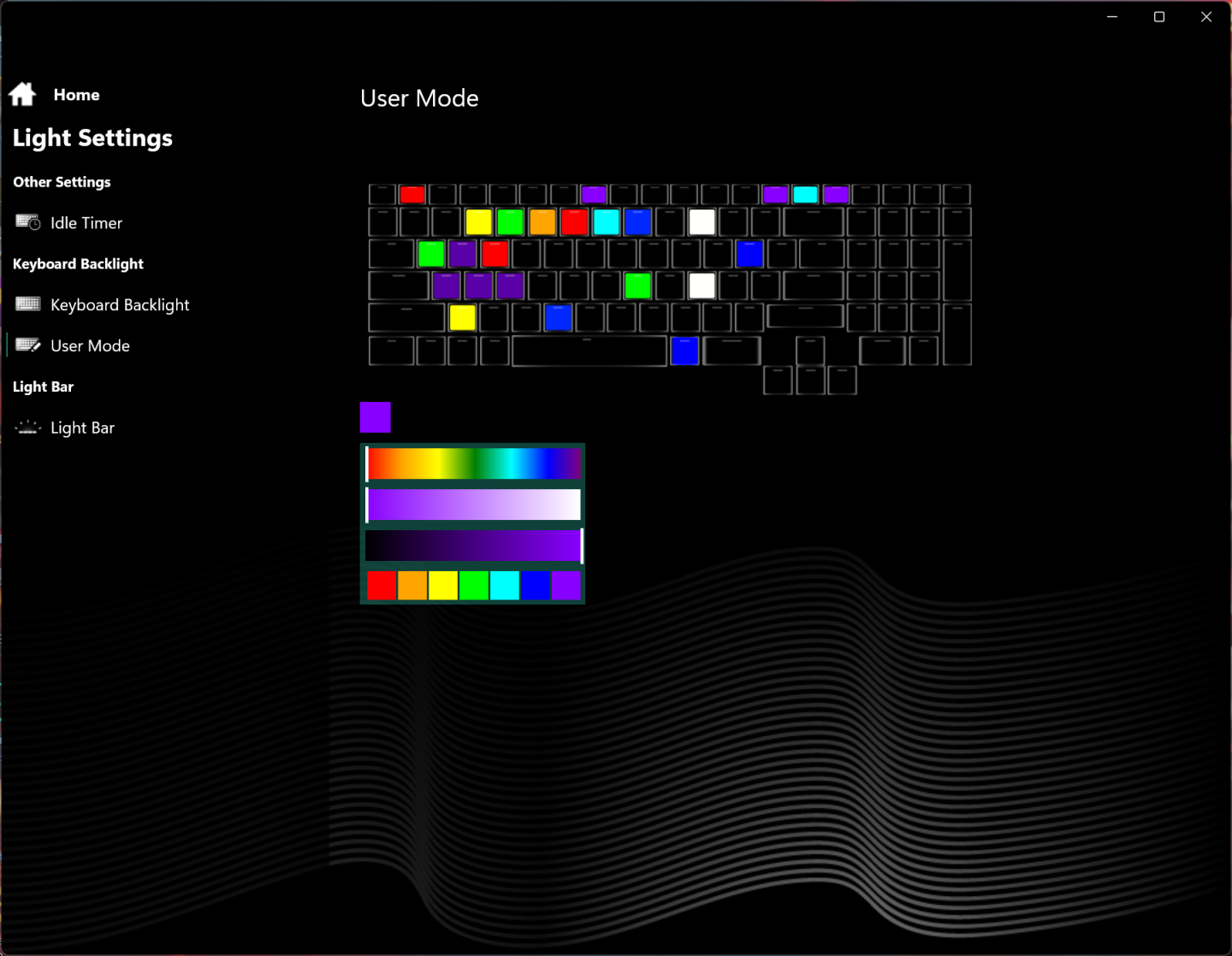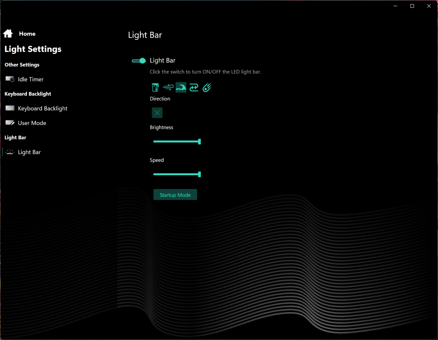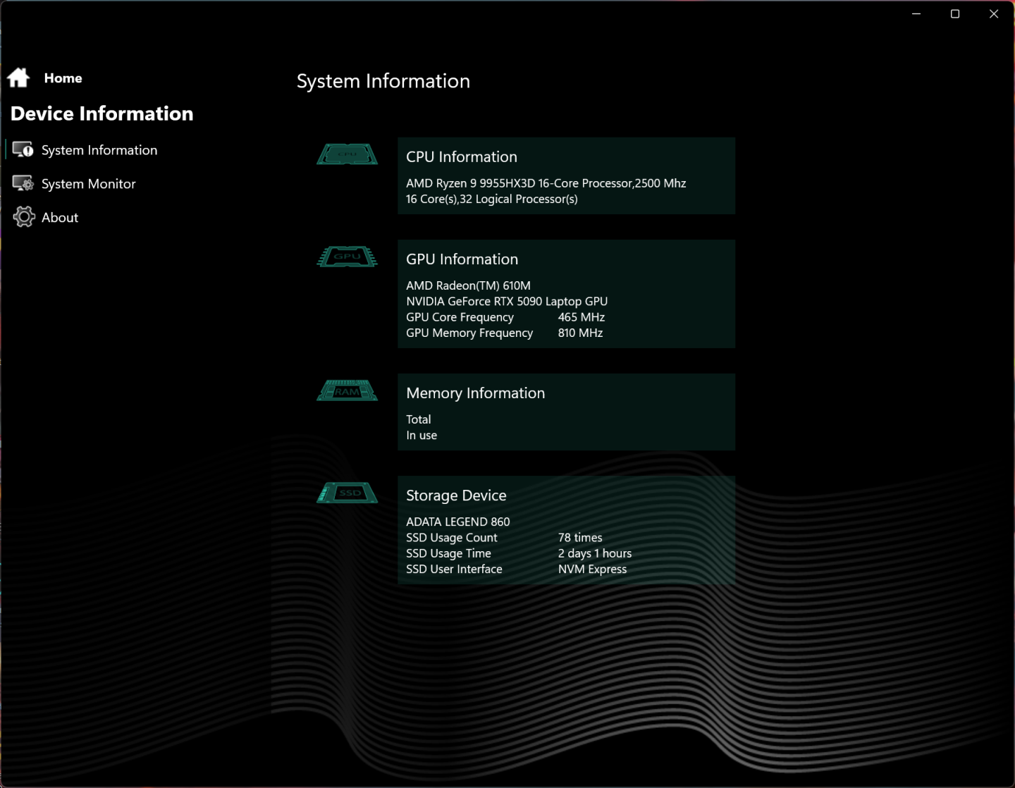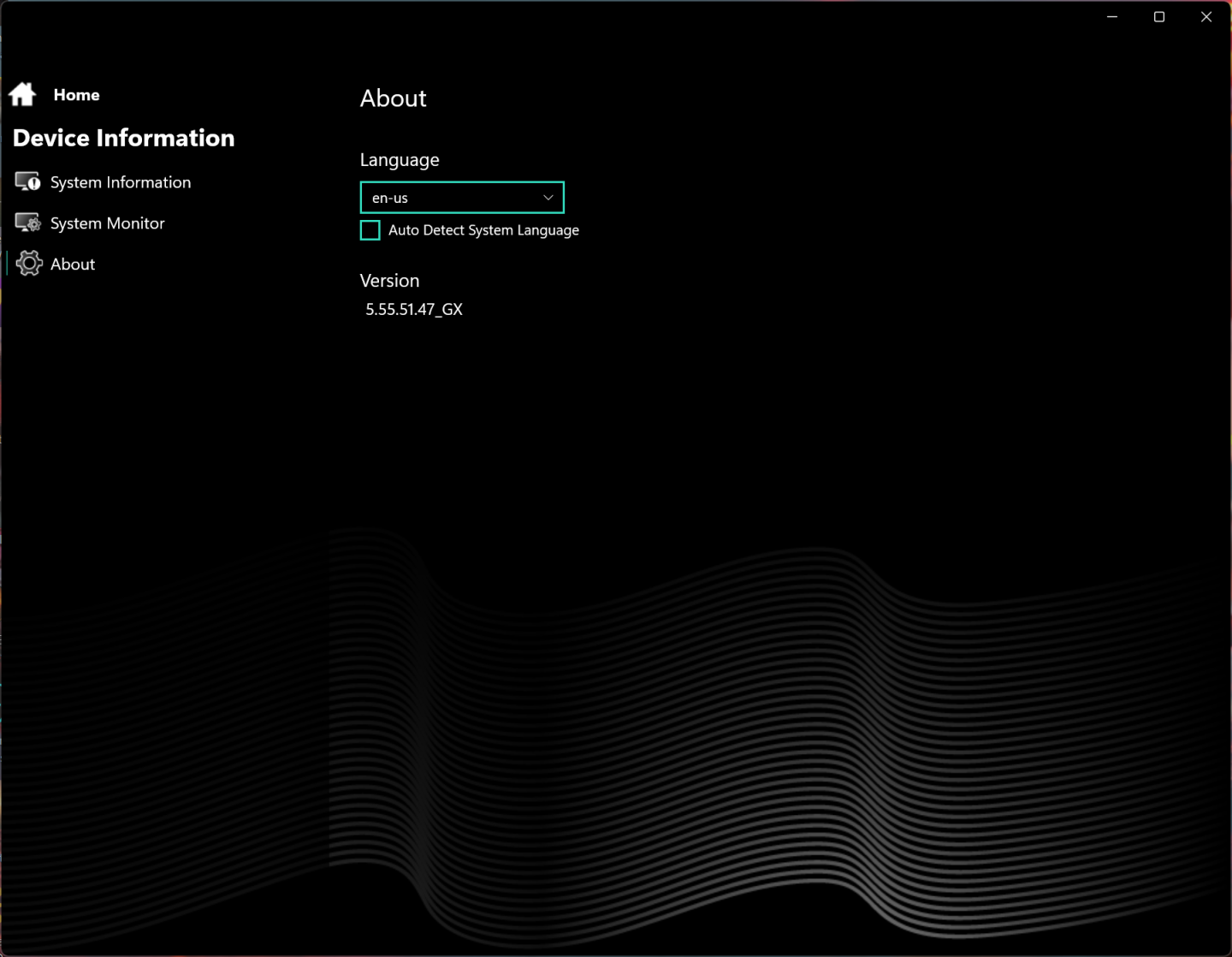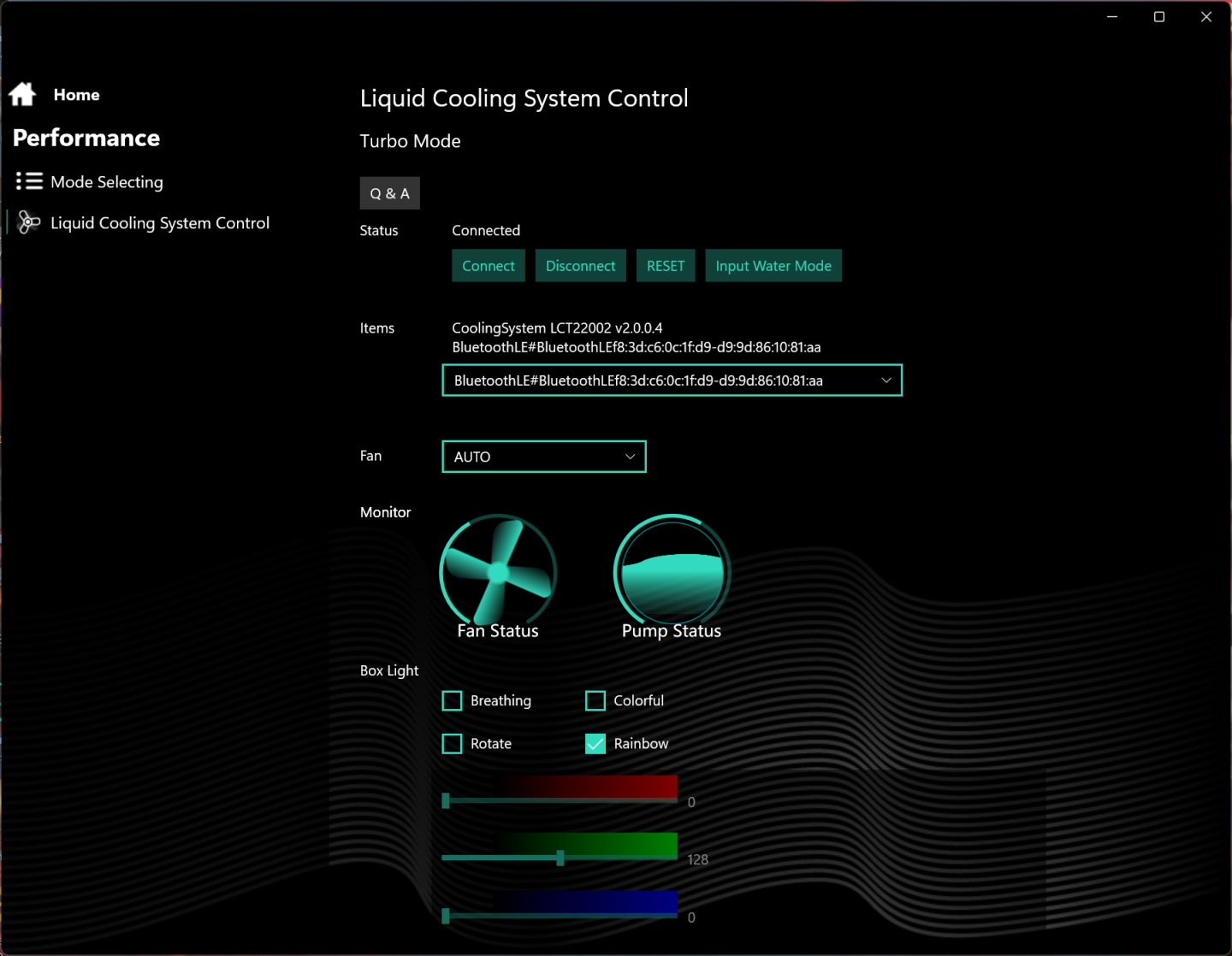 С ноутбуком поставляется программа Control Center, с помощью которой можно осуществить настройку и контроль за лэптопом. Имеется управление клавиатурой и коммуникационными интерфейсами, можно выбрать режим работы графической системы и ноутбука в целом. Присутствует возможность разгона, а также доступны параметры функционирования системы жидкостного охлаждения. В ней можно настроить подсветку клавиатуры, корпуса и внешнего блока жидкостного охлаждения. Есть раздел с режимами работы экрана и настройкой его параметров. Также можно настроить батарею, получить информацию по установленным компонентам и провести их мониторинг.
