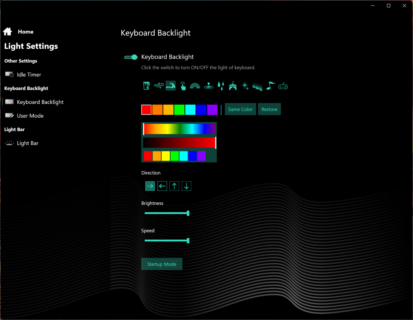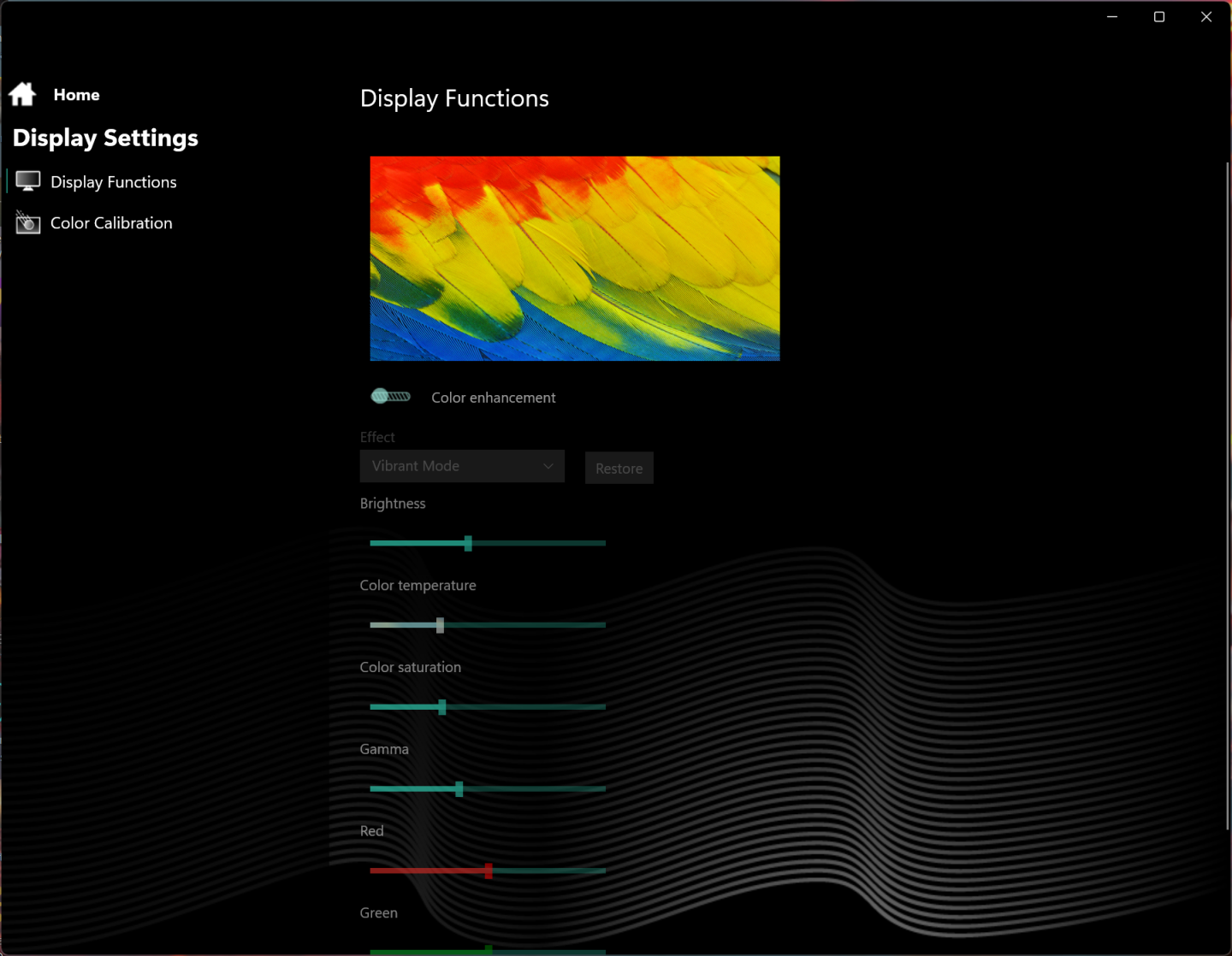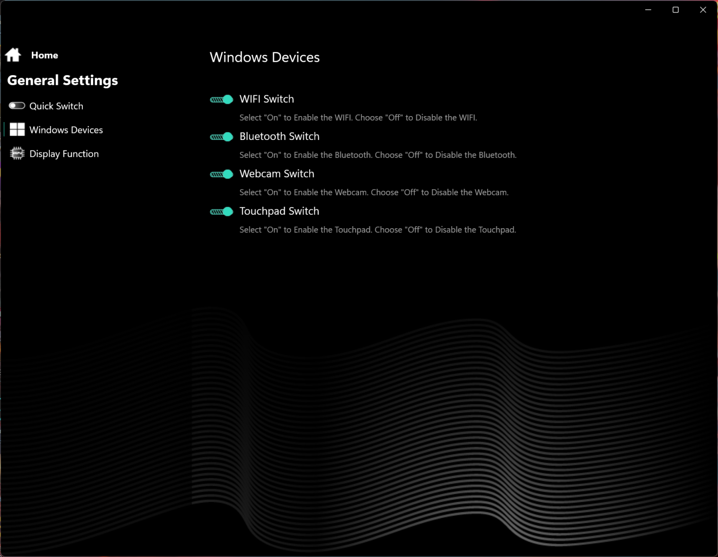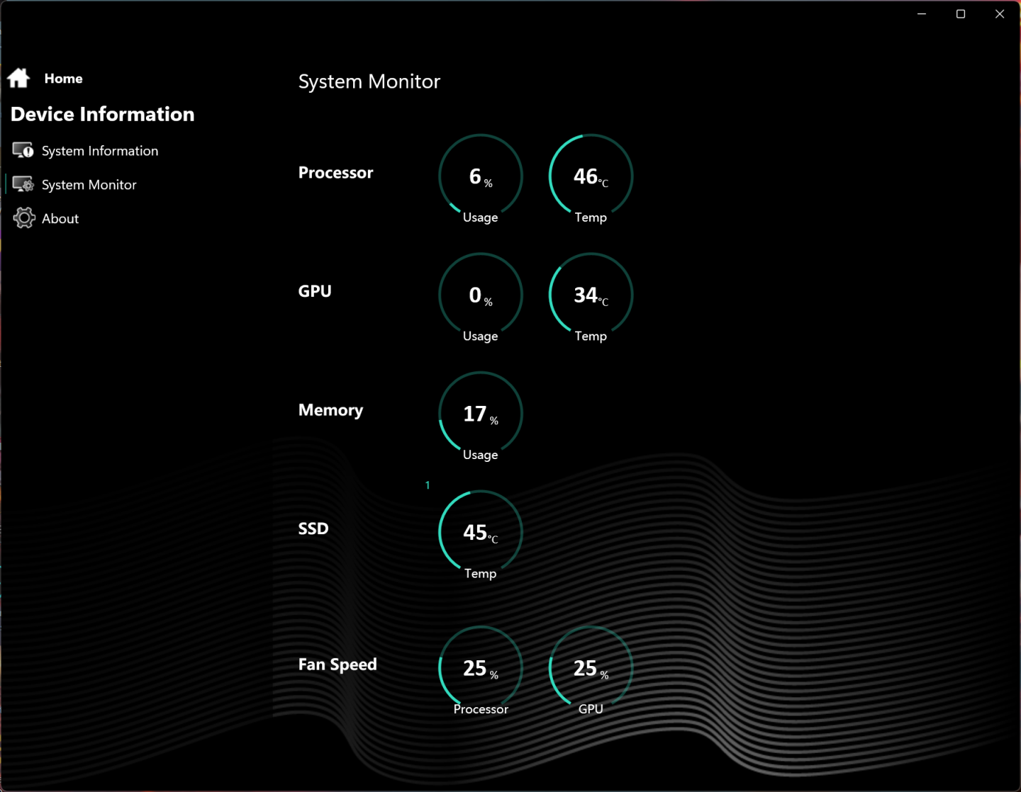 С ноутбуком поставляется программа Control Center, с помощью которой можно осуществить настройку и контроль за лэптопом. Имеется управление клавиатурой и коммуникационными интерфейсами, можно выбрать режим работы графической системы и ноутбука в целом. Присутствует возможность разгона, а также доступны параметры функционирования системы жидкостного охлаждения. В ней можно настроить подсветку клавиатуры, корпуса и внешнего блока жидкостного охлаждения. Есть раздел с режимами работы экрана и настройкой его параметров. Также можно настроить батарею, получить информацию по установленным компонентам и провести их мониторинг.