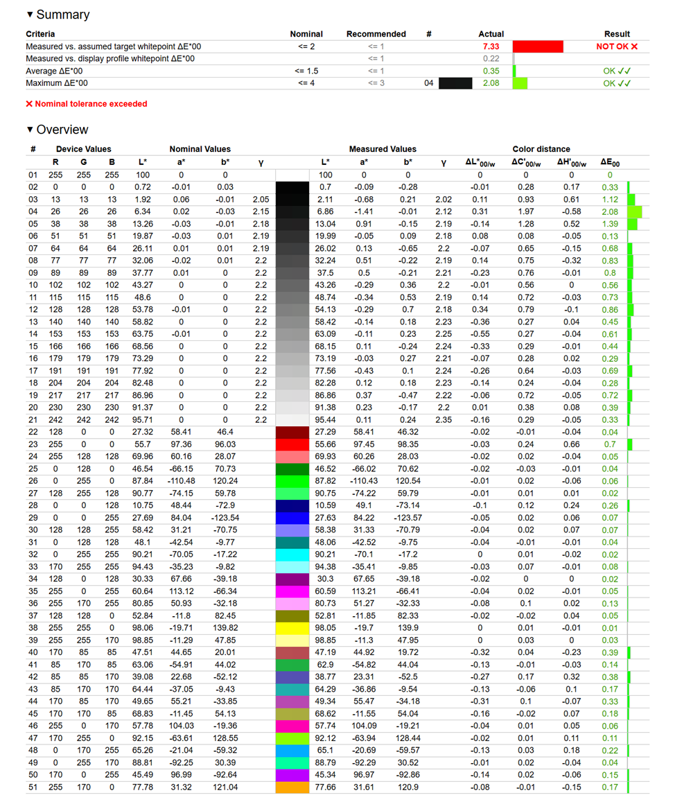 Посмотрим, так это или нет, для чего воспользуемся прибором SpyderX Pro и программами DisplayCAL с Argyll и HCFR Colormeter. Яркость была установлена на уровне 124 кд/м², что соответствует 38% от максимального значения для дискретной карты.