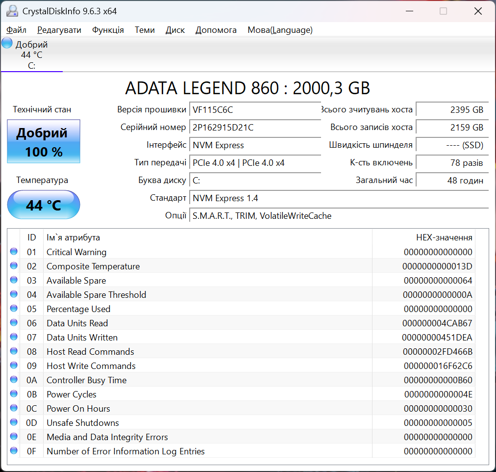 Дисковая подсистема выполнена на NVMe-накопителе ADATA Legend 860 с поддержкой шины PCI Express 4.0 x4. Как и в случае с памятью, дисковую подсистему можно выбрать при заказе ноутбука на сайте производителя.