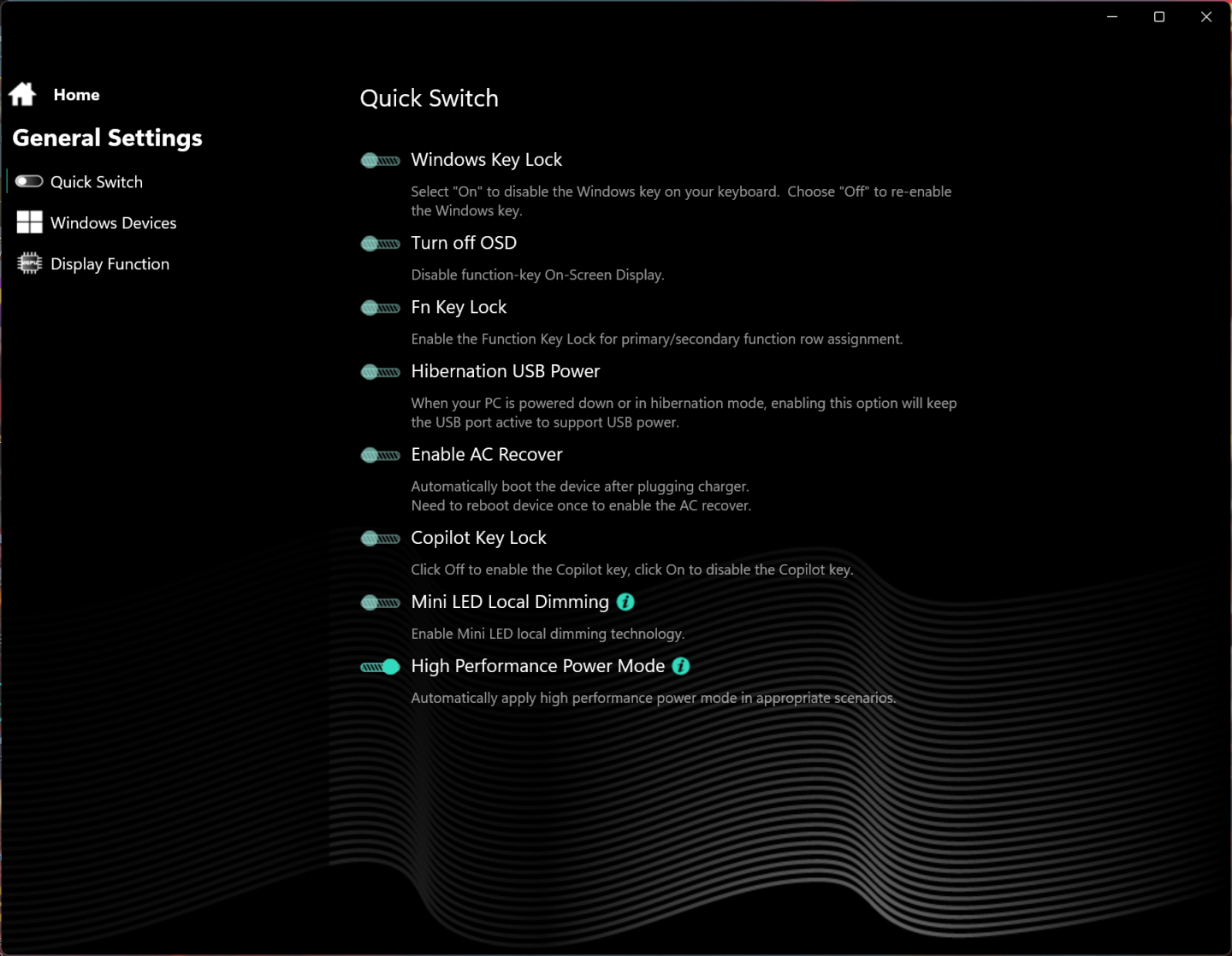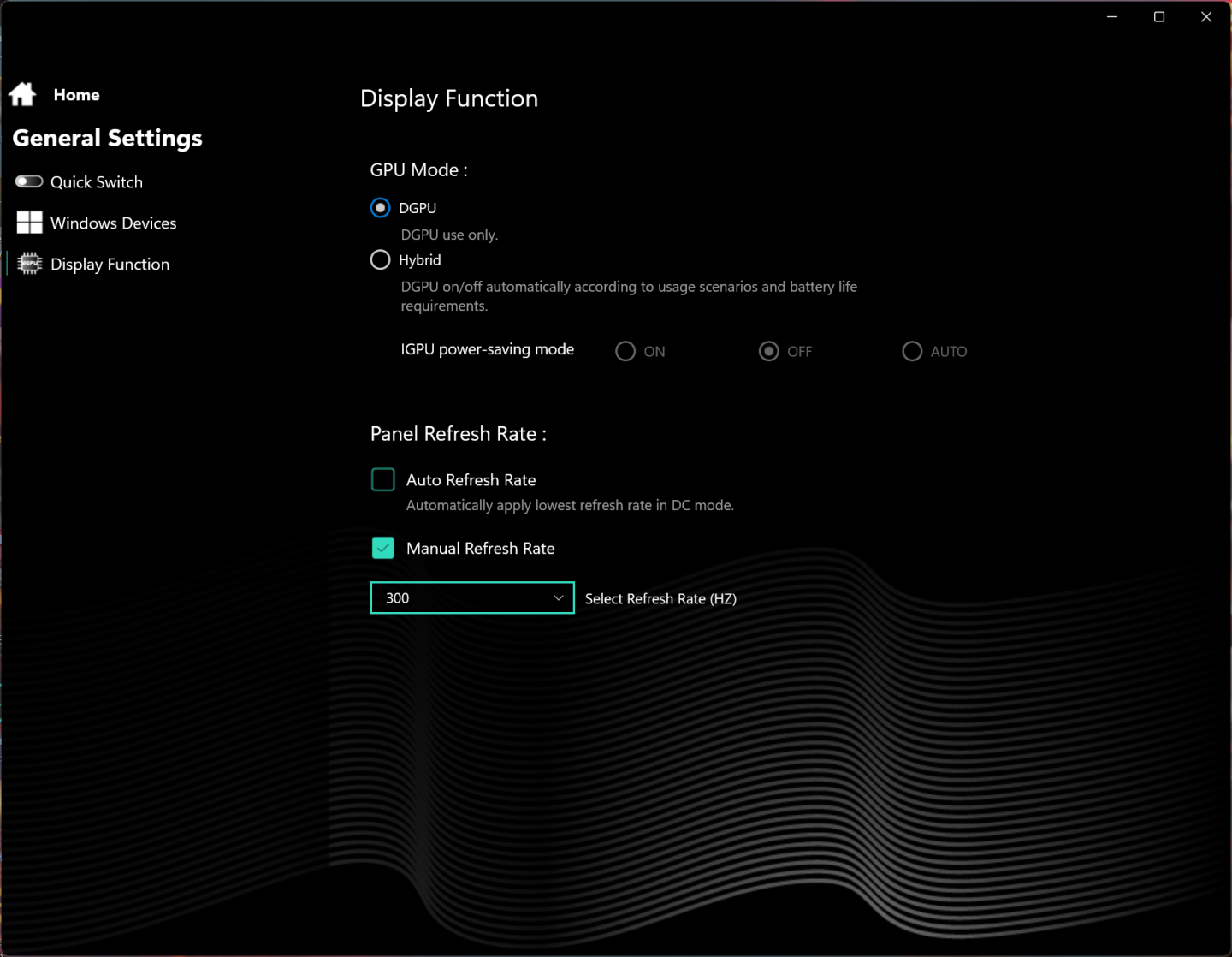 В случае, когда дискретная видеокарта не нужна на постоянной основе, можно включить режим MSHybrid в фирменном ПО, тогда в зависимости от нагрузки, графическая система будет переключаться на встроенное в процессор ядро Radeon 610M. В таком режиме также частота обновления экрана не превысит 240 Гц при заявленных 300 Гц.