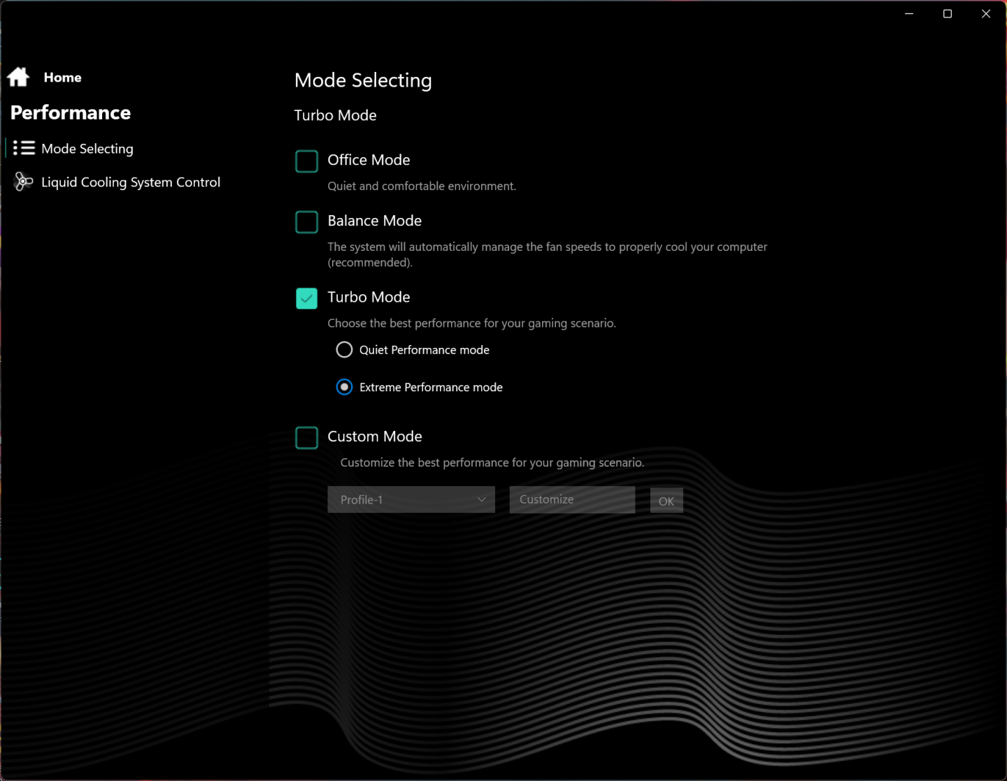 Видеокарта также чувствует себя лучше в таком режиме, частоты поднимаются до 1972–2235 МГц, а температуры составляют лишь 65 градусов, что на 12 градусов ниже чисто воздушного охлаждения. Процессор начинает работать по максимуму, а уровень шума вообще меньше Balanced Mode и составляет лишь 41,5 дБ(А)!
