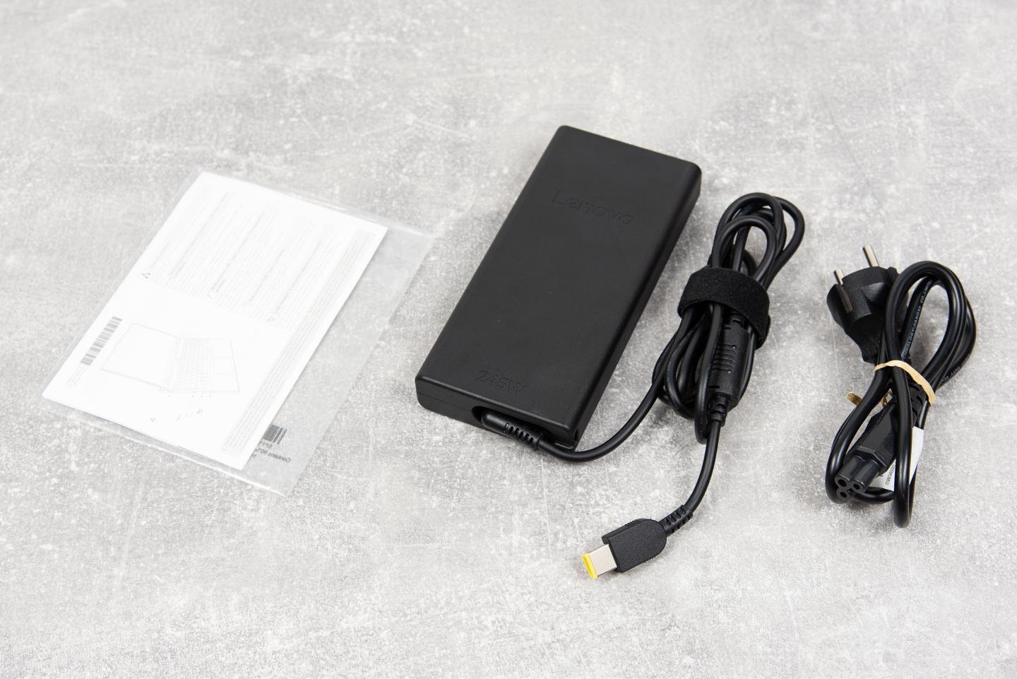 В комплекте поставки имеются документация и блок питания с сетевым кабелем. Блок мощностью 245 Вт имеет выходное напряжение 20 В при силе тока 12,25 А. Разъем питания здесь плоский, так что заменить при необходимости будет не просто.