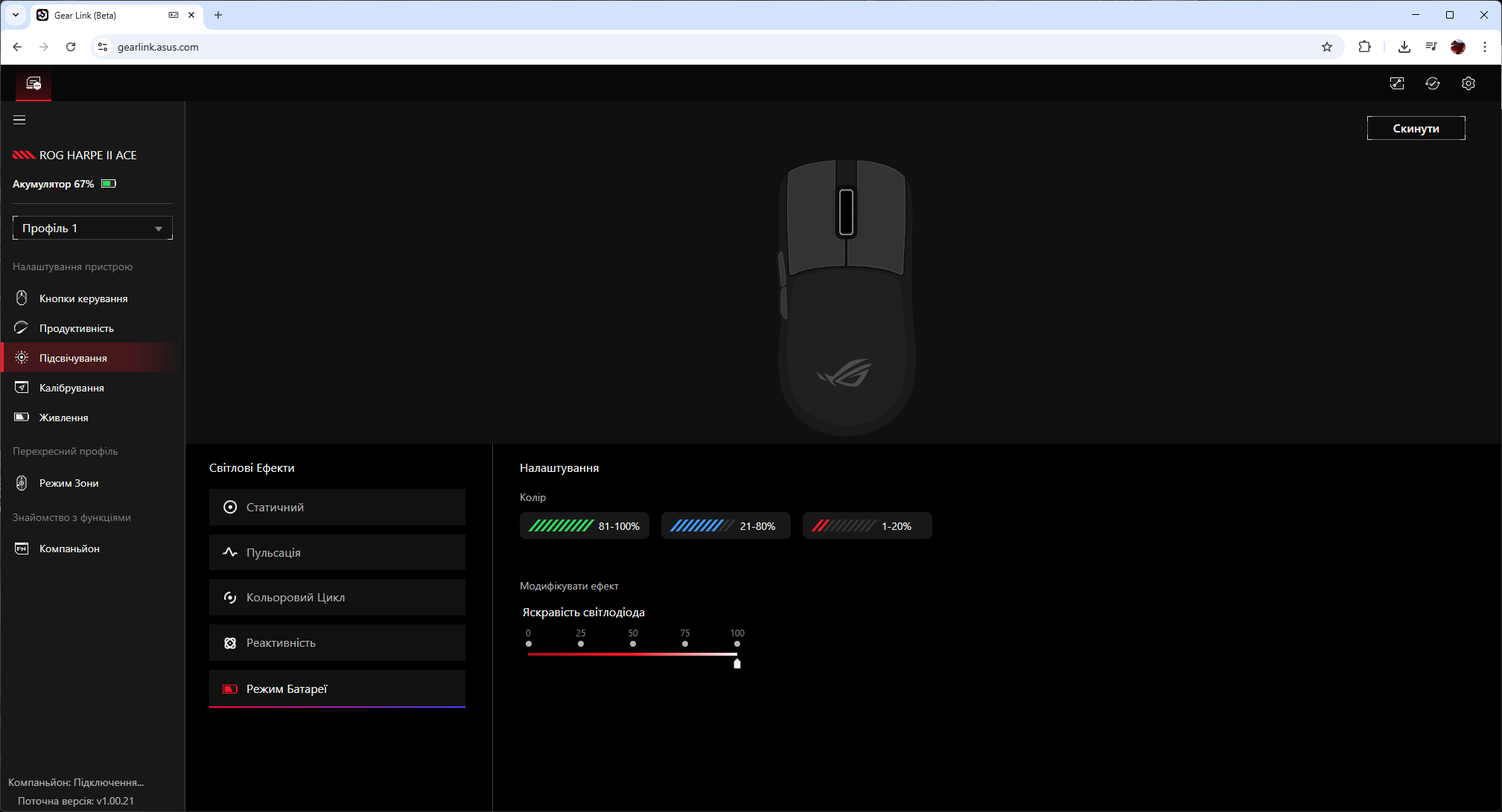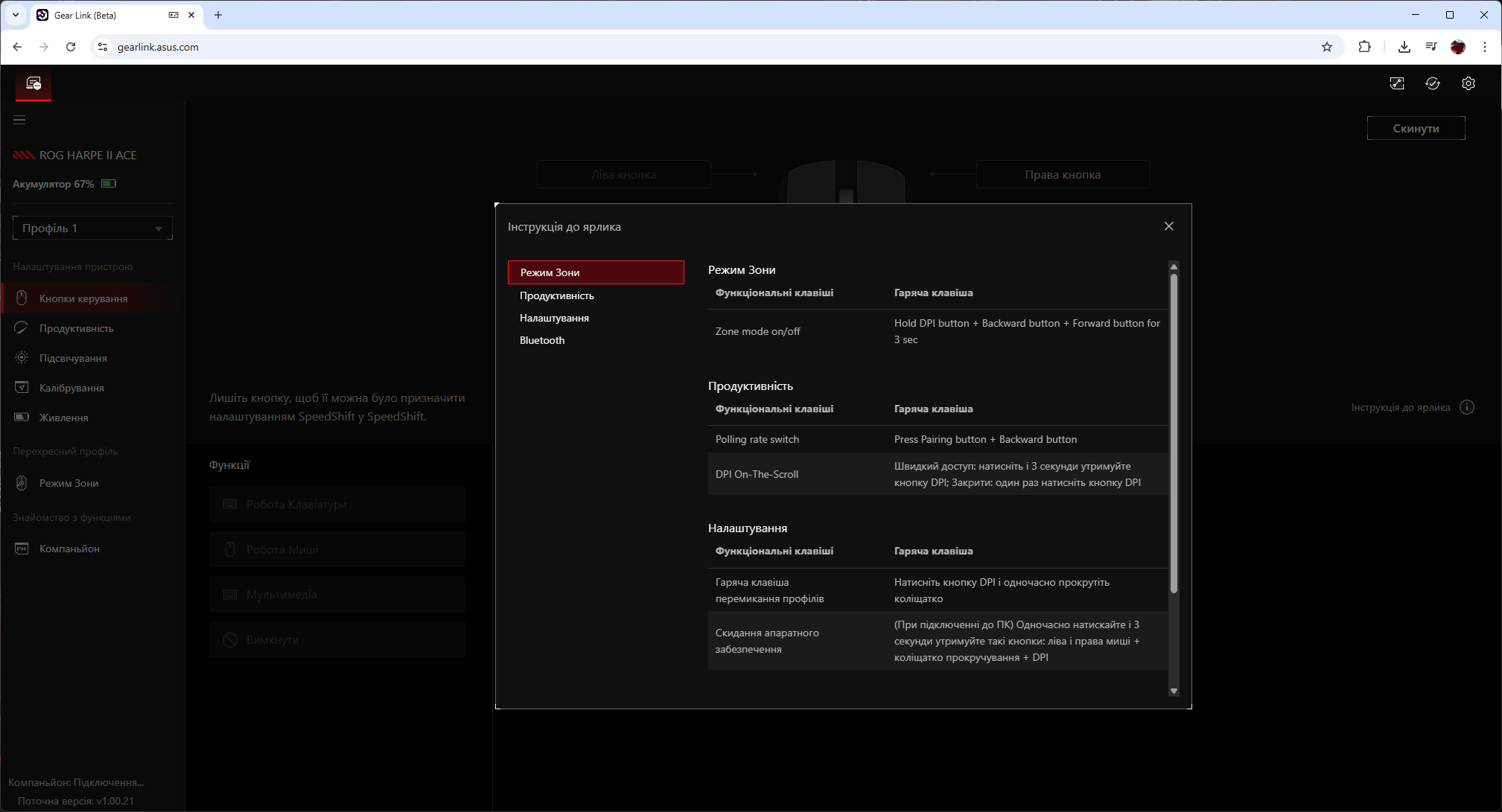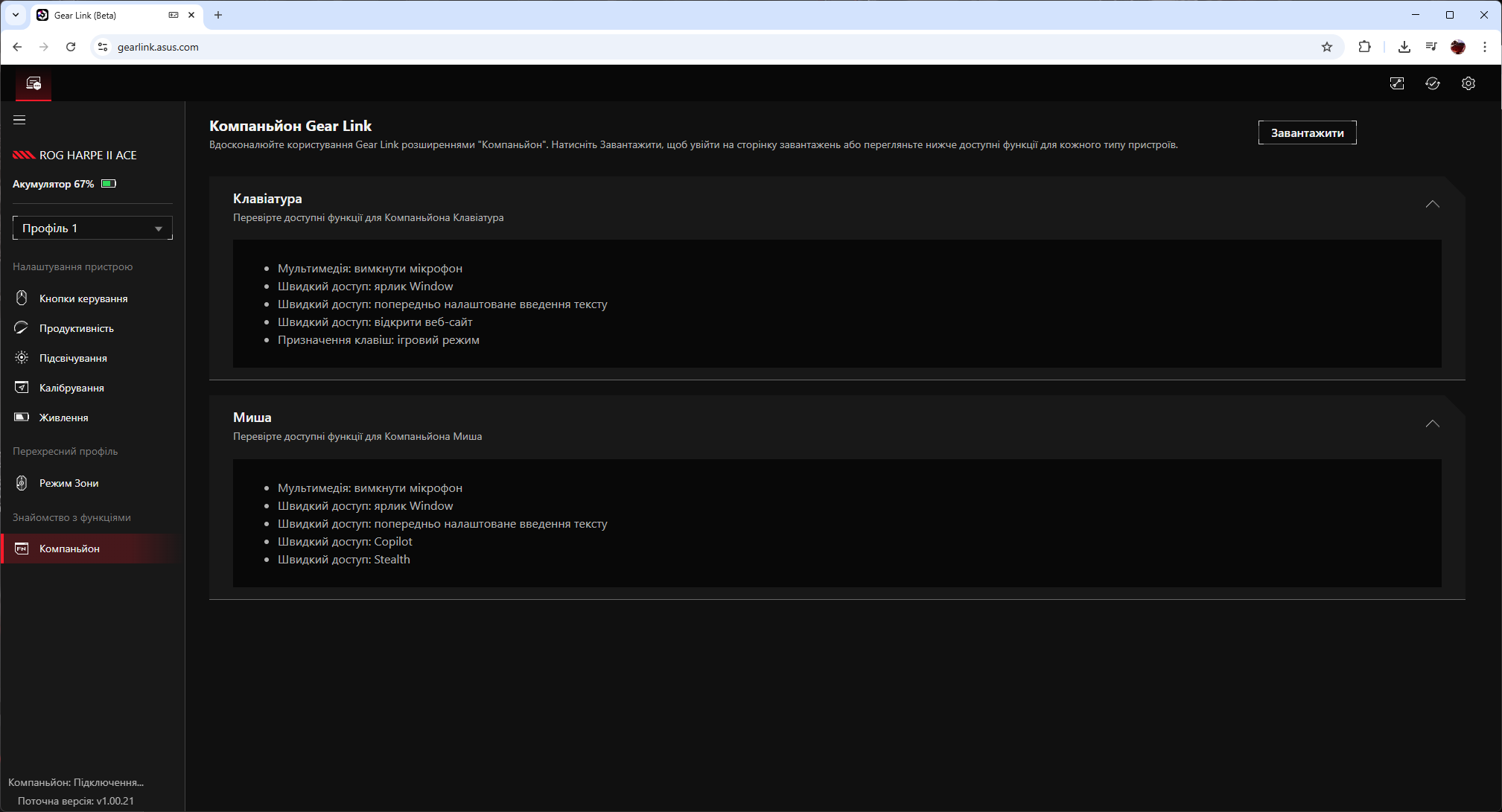 Веб-подход означает ноль установок, ноль фоновых процессов, полную кроссплатформенность. Это стратегическая победа ASUS и огромный плюс для энтузиастов. Работает все прекрасно. Также интересно, что к Gear Link можно добавить расширение «Компаньон», которое позволяет получить доступ для некоторых вторичных функций, недоступных через браузер.