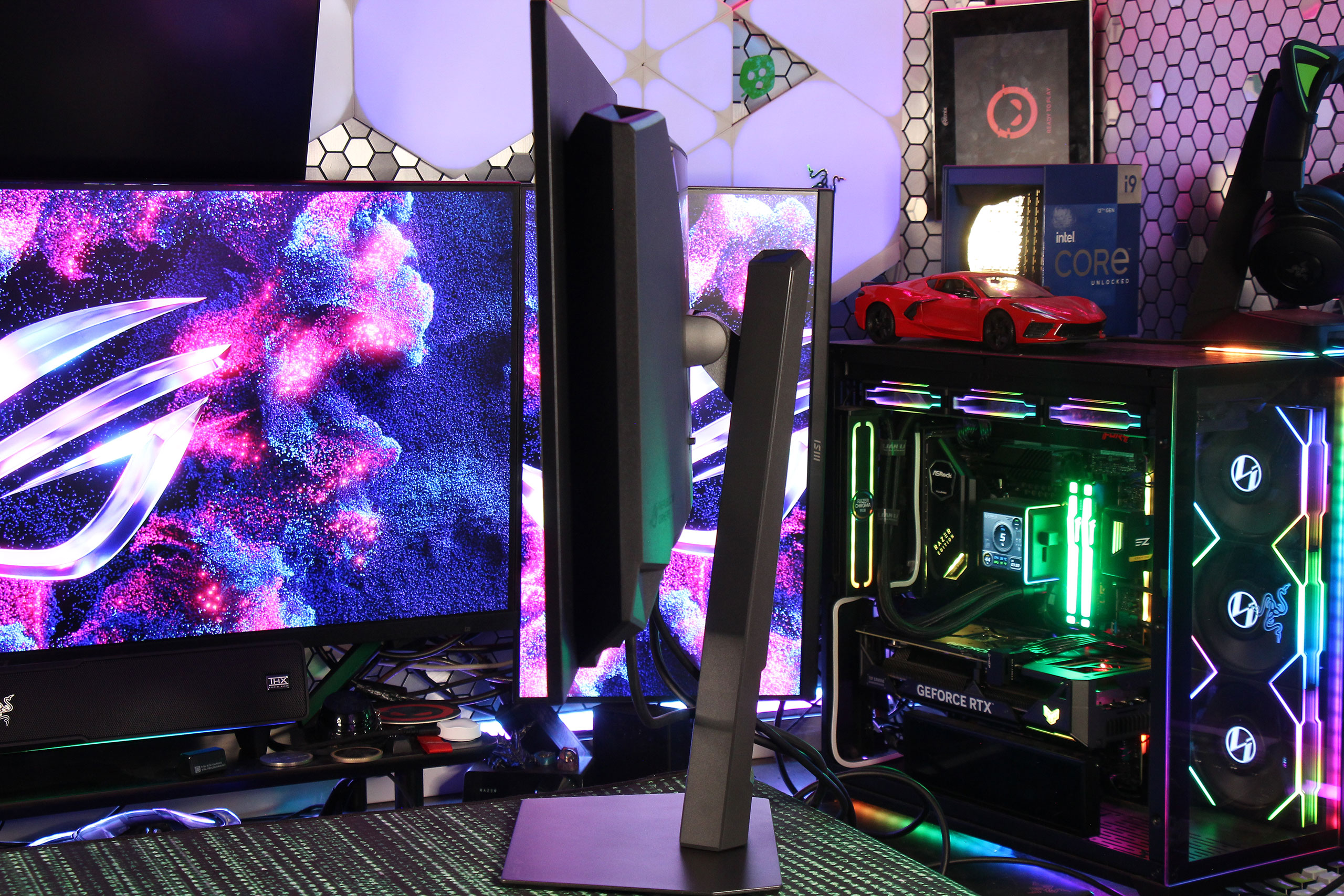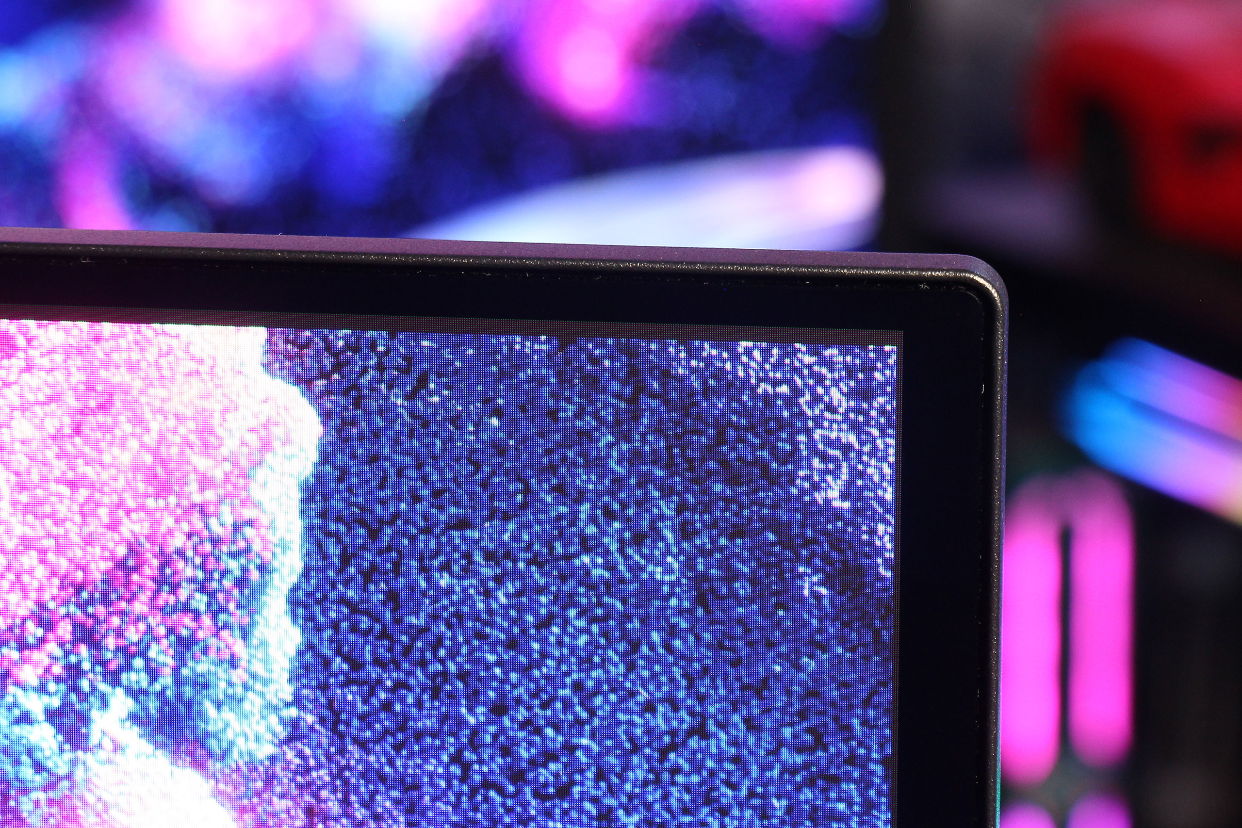 Передняя панель практически полностью занята 26,5‑дюймовым экраном с минимальными рамками около 2 мм с трех сторон. В отличие от некоторых OLED-конкурентов, во включенном состоянии боковые рамки остаются достаточно тонкими благодаря оптимизированной системе сдвига пикселей для предотвращения выгорания, хотя, конечно, фактические рамки таки в разы больше, чем на это намекает корпус.