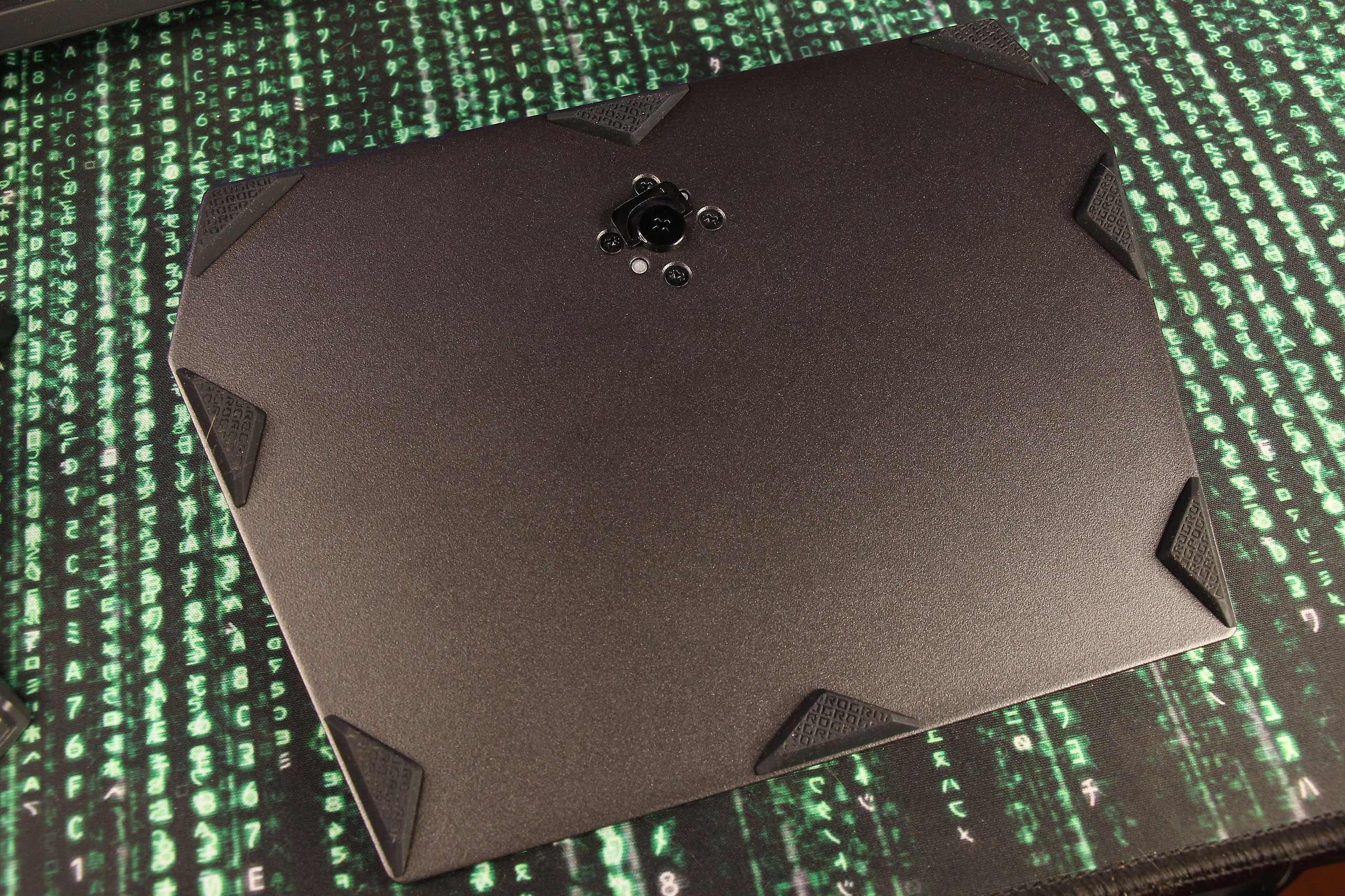 Фирменные геометрические узоры и RGB-подсветка логотипа ROG на задней панели подчеркивают геймерскую направленность устройства, при этом не выглядя чрезмерно вычурно.