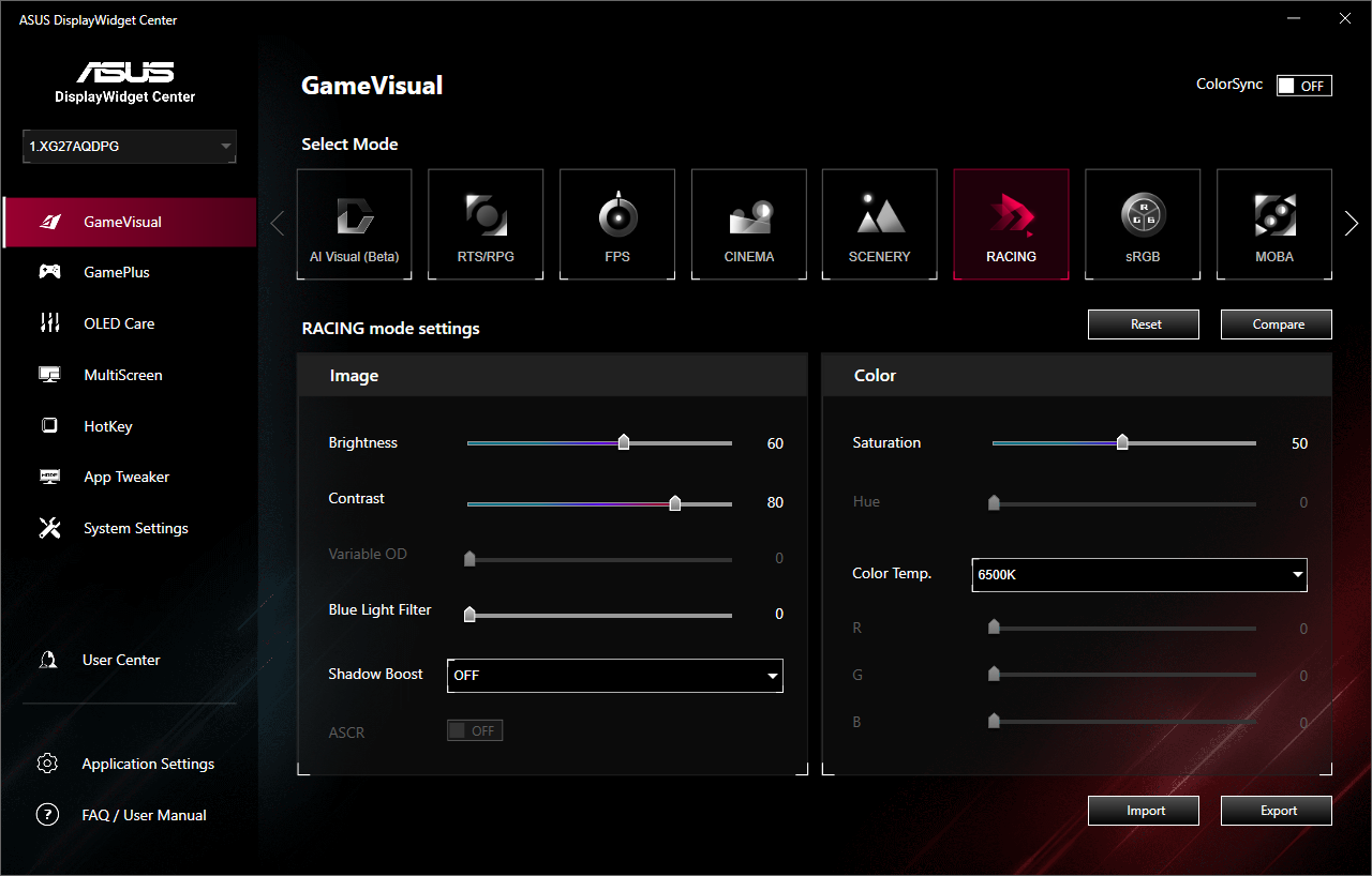 GameVisual и GamePlus дублирует функции OSD-меню с более удобным управлением мышью. Возможность точной настройки параметров с помощью ползунков и числовых значений значительно упрощает калибровку.