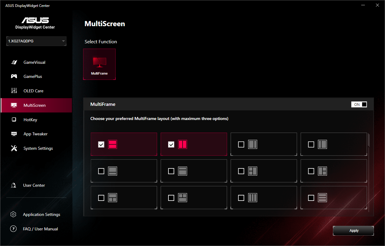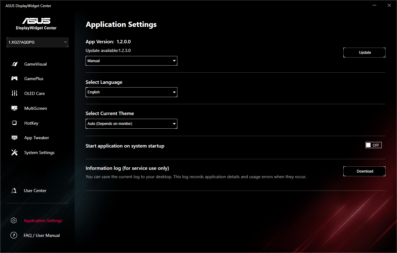 ASUS DisplayWidget Center для Windows представляет собой мощный инструмент управления монитором через интуитивный графический интерфейс. Приложение требует USB-подключения и автоматически распознает монитор при первом запуске. Интерфейс организован в виде вкладок с логическим распределением функций. Главный экран отображает текущий профиль и основные параметры с возможностью быстрой настройки.