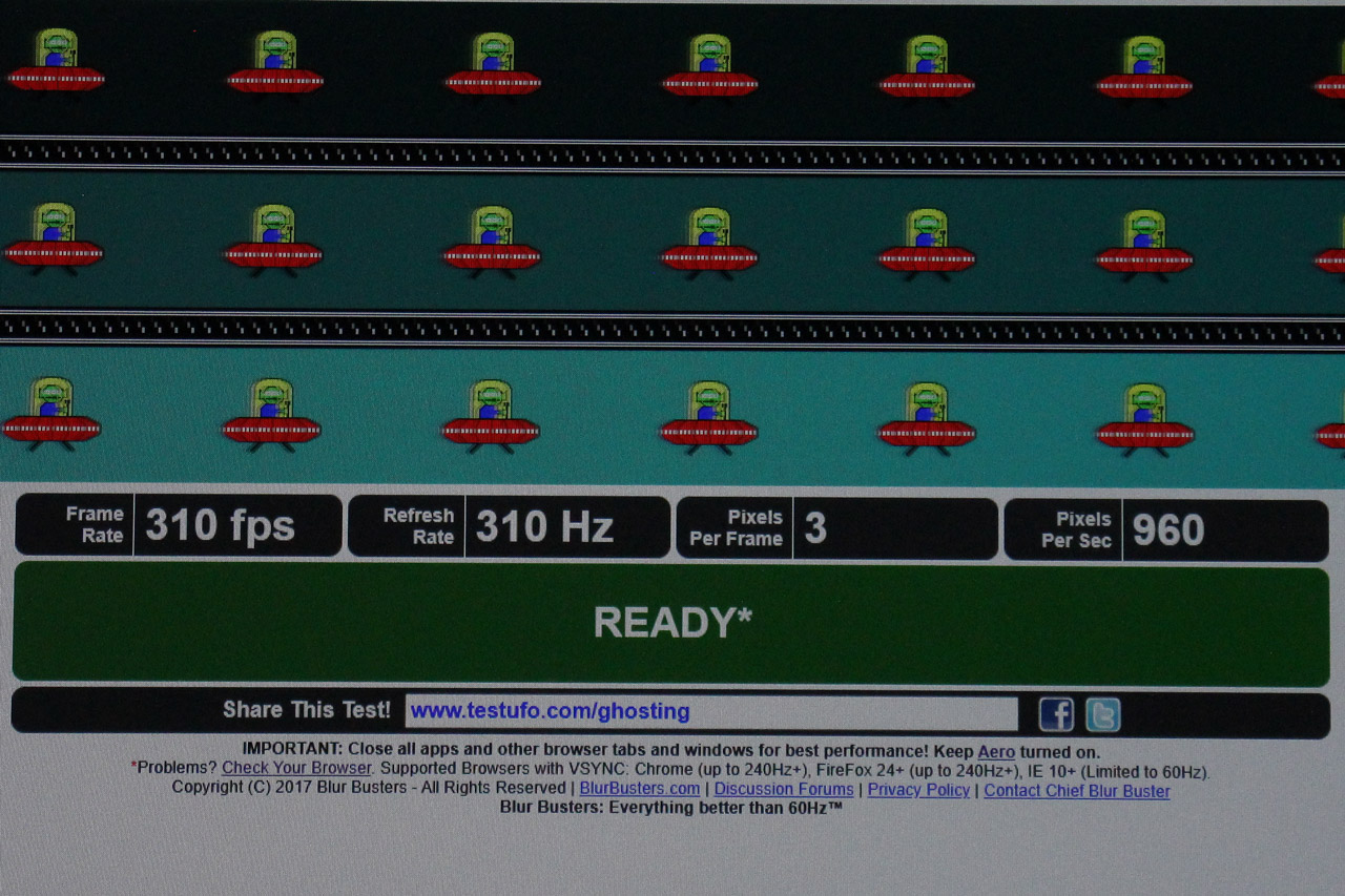 Тест Blur Busters UFO Ghosting/Pursuit Camera после обновления драйверов видеокарты отрабатывает все правильно:
