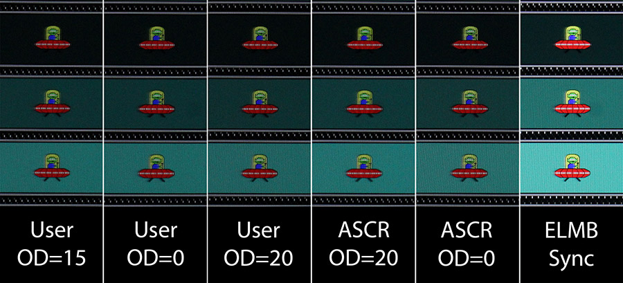 Есть несколько режимов, в которых интересно сравнить поведение ASUS ROG Strix XG259CMS:
