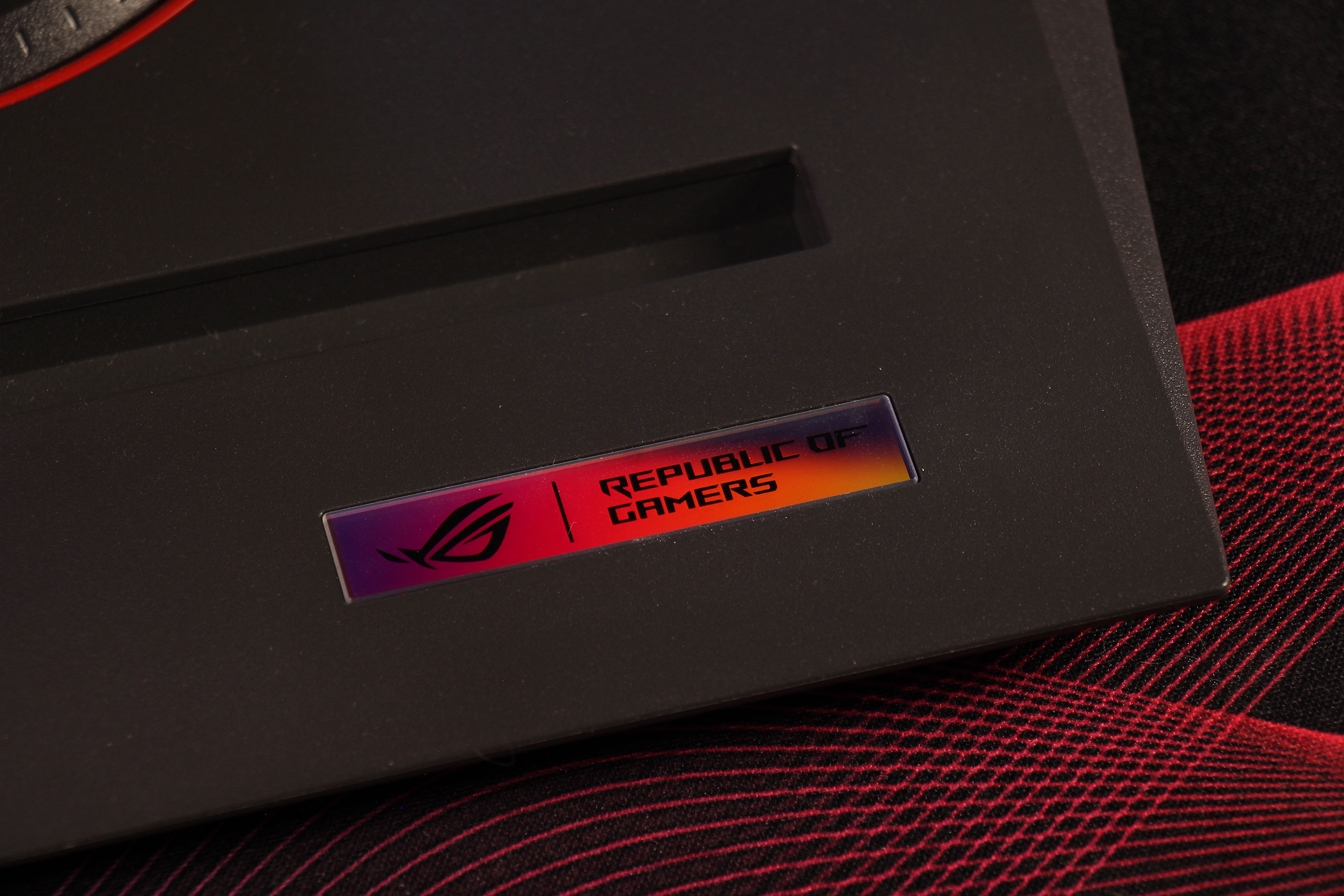 Передняя панель имеет тонкие рамки, которые в выключенном состоянии создают впечатление «безрамочного» дизайна. Нижняя рамка, конечно, немного толще остальных и содержит логотип ROG.