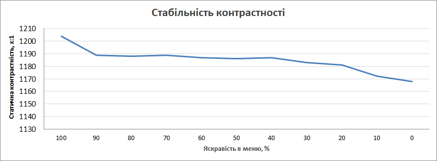 | Коэффициент контрастности, х:1 | 1196 | 1157 | 1036 | 1194 | 1162 | 1169 | 1189 | 1181 |
