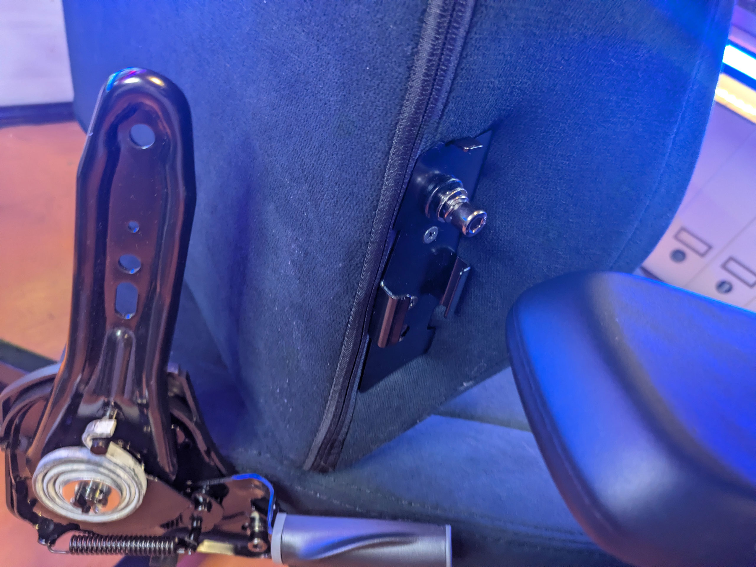 Далее также четырьмя винтами нужно прикрутить механизм наклона. На механизме есть пометка «Front», подсказывающая, какой стороной нужно устанавливать к переднему краю.