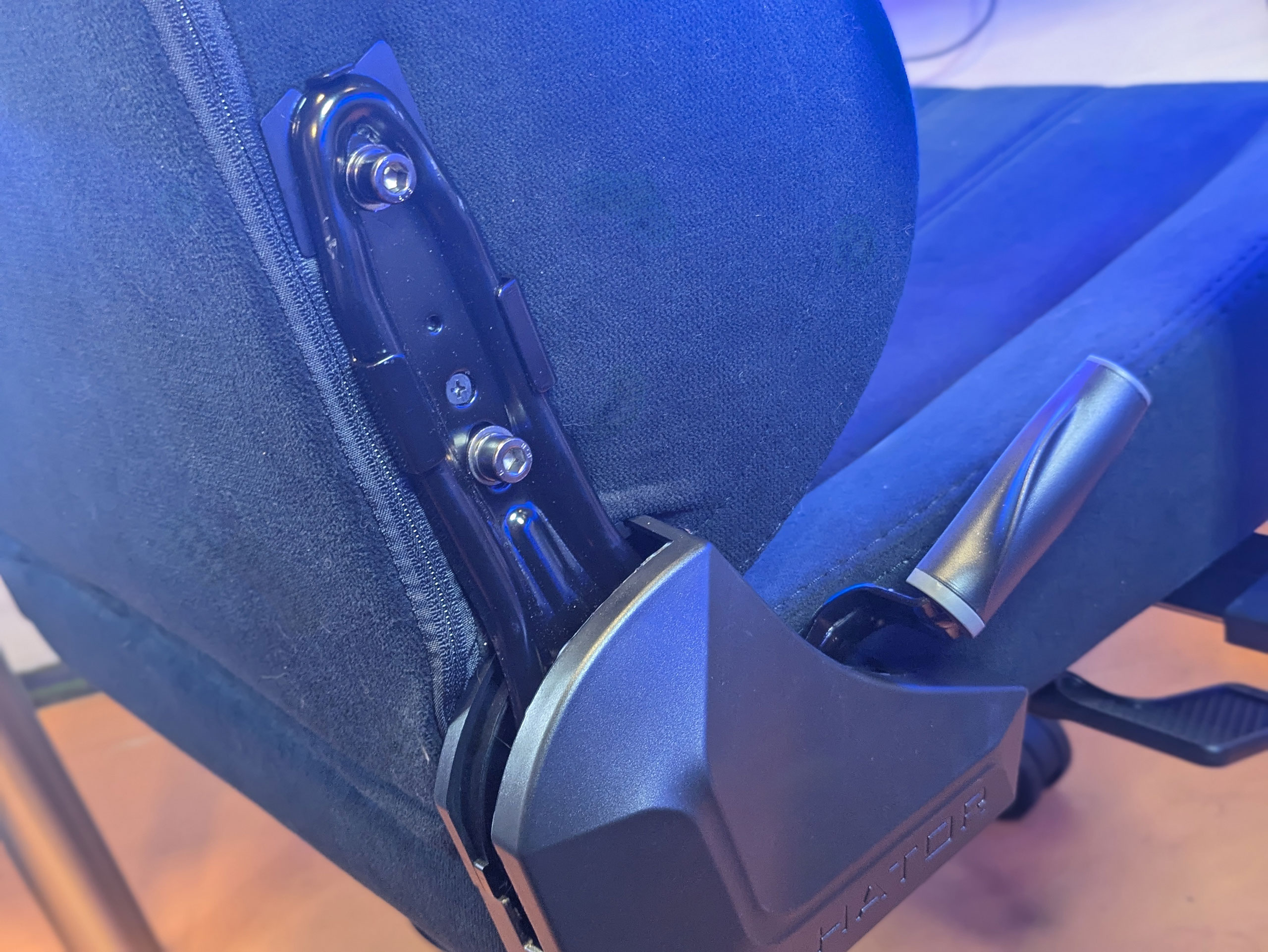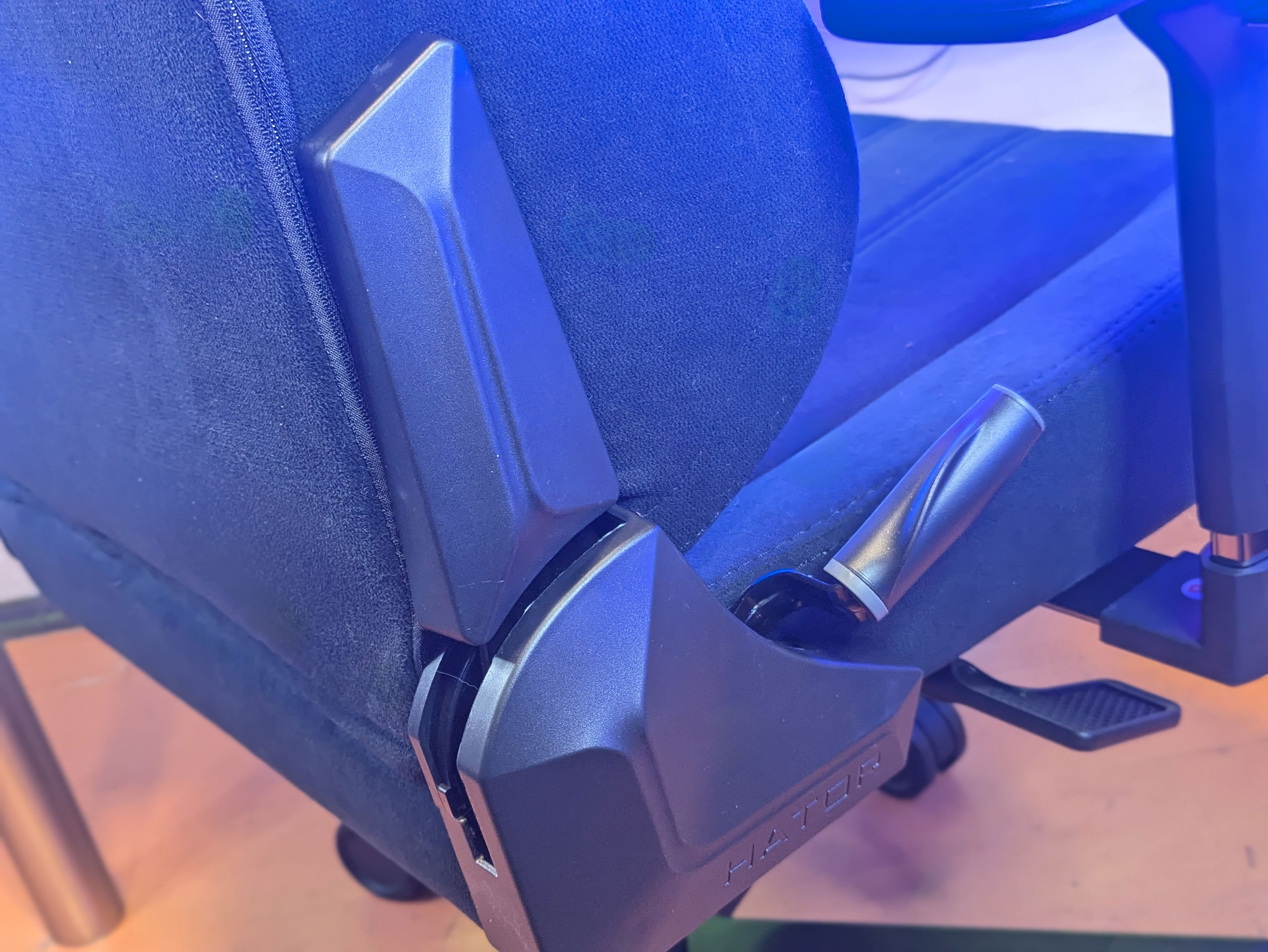 Регулировка высоты кресла осуществляется рычагом под сиденьем справа. Правильная высота — когда ноги стоят на полу, а бедра параллельны полу или под небольшим углом вниз. Рычаг слева отвечает за регулировку механизма качания. Оба рычага металлические и имеют пластиковые удлинения для удобства, которые надо установить.
