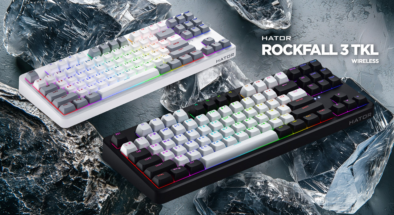 2025 год начался для HATOR целым рядом анонсов новых продуктов, которые выглядят очень амбициозно относительно их предшественников. Одним из них является клавиатура Rockfall 3 TKL Wireless — пока единственный представитель новой серии Rockfall 3. Сама по себе линейка Rockfall ранее уже была довольно популярной, поэтому интересно увидеть, какие изменения принесло третье поколение по сравнению с Rockfall 2, которое было у нас на обзорах представлено моделями TKL Mecha и TKL Mecha Authentic Edition.