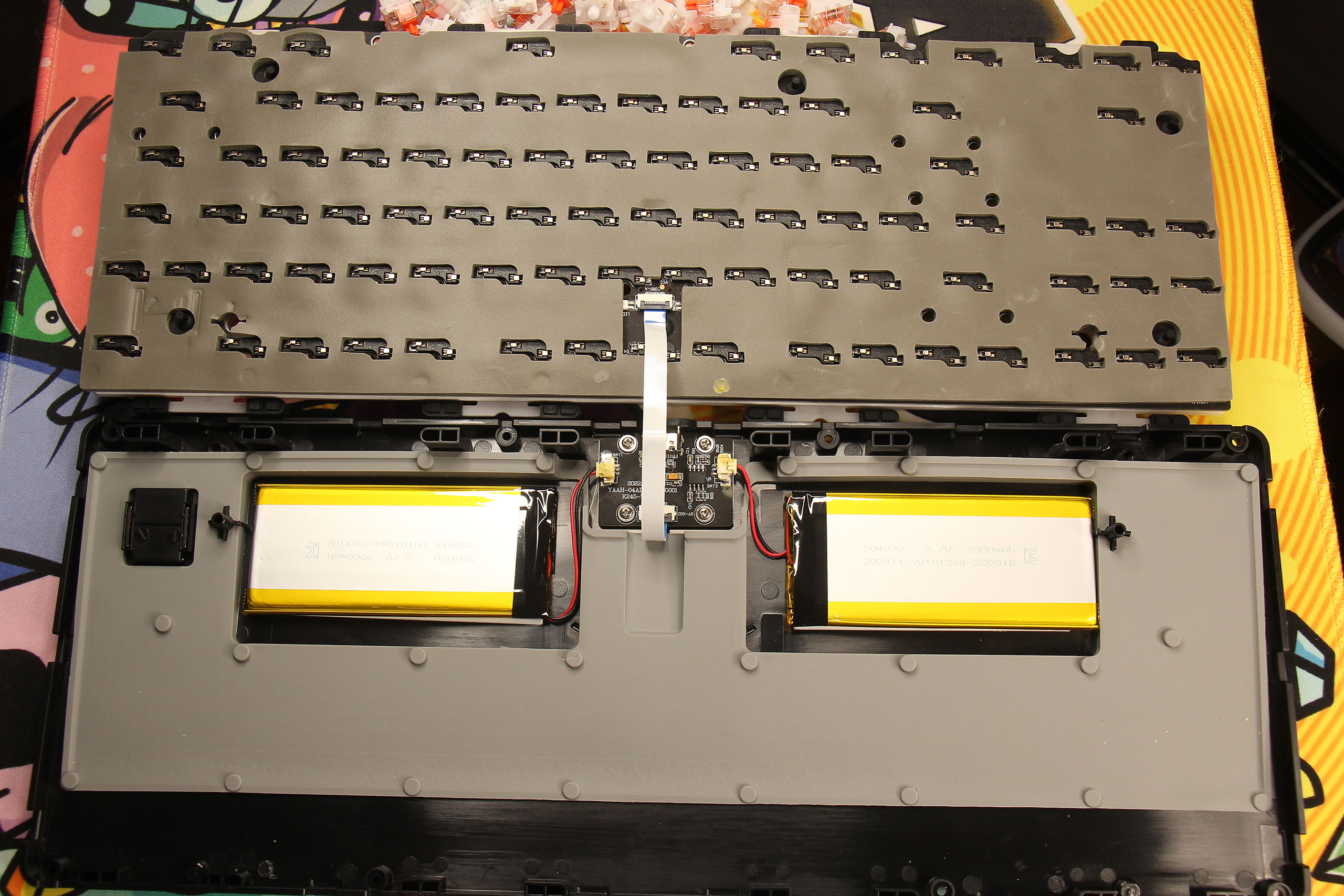 Автономность также на высоте — батарея емкостью 4000 мАч из двух отдельных блоков обеспечивает до 160 часов работы с выключенной подсветкой в режиме 2,4 ГГц. На практике, с умеренным использованием RGB-подсветки, клавиатура работает около рабочей недели активного использования без подзарядки. Процесс зарядки занимает до 8 часов, но предусмотрена возможность одновременной работы через кабель.
