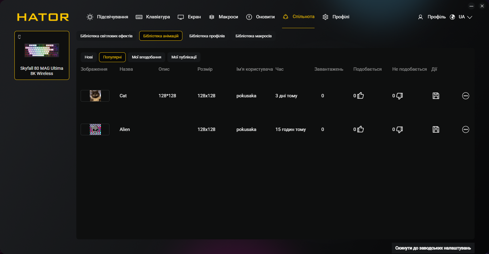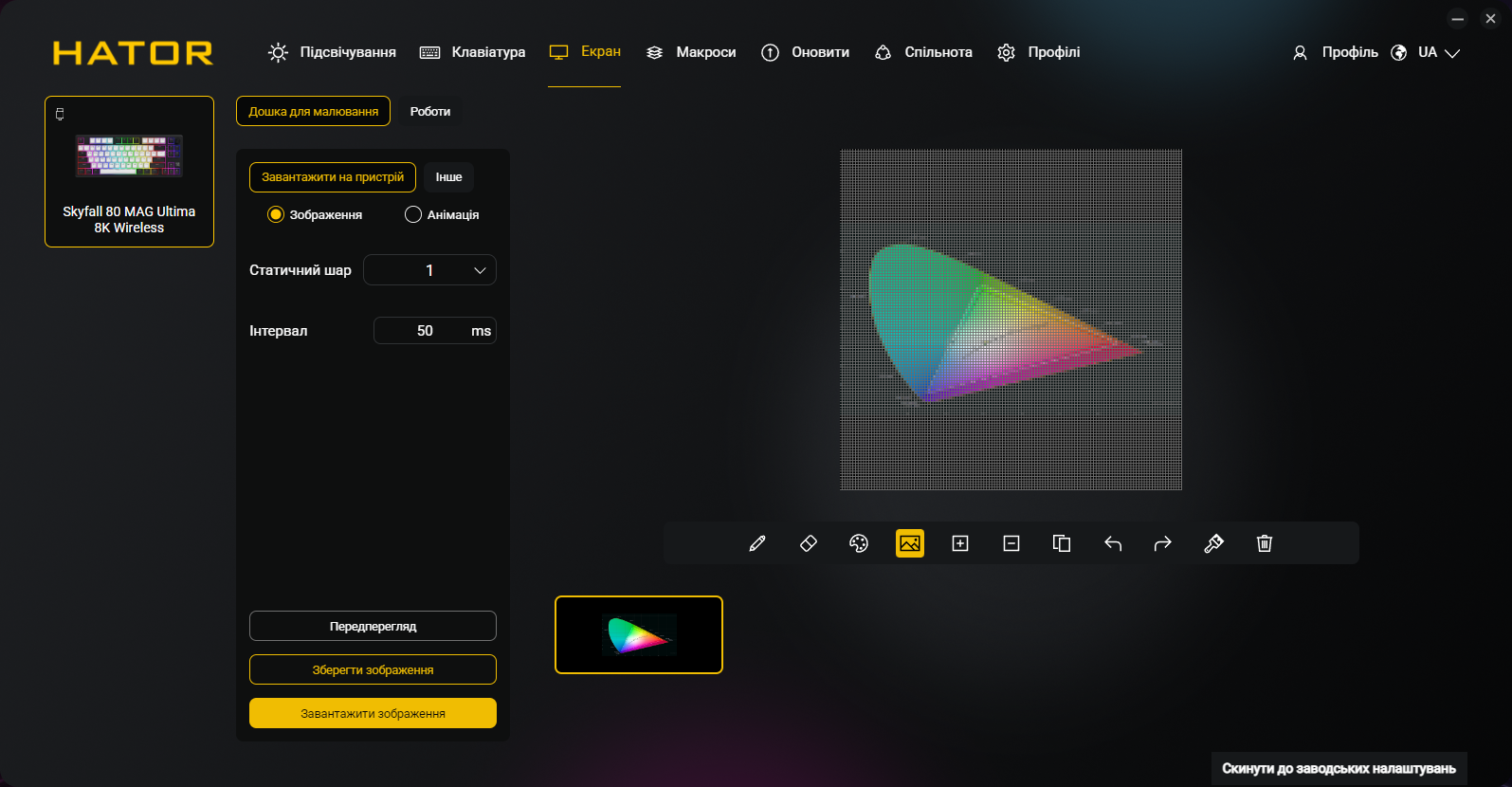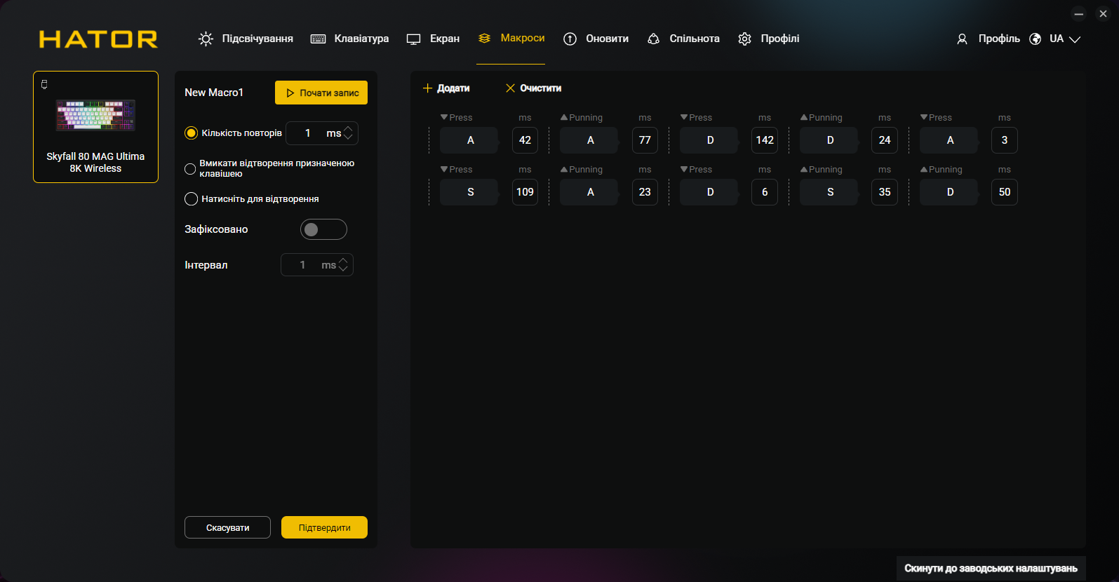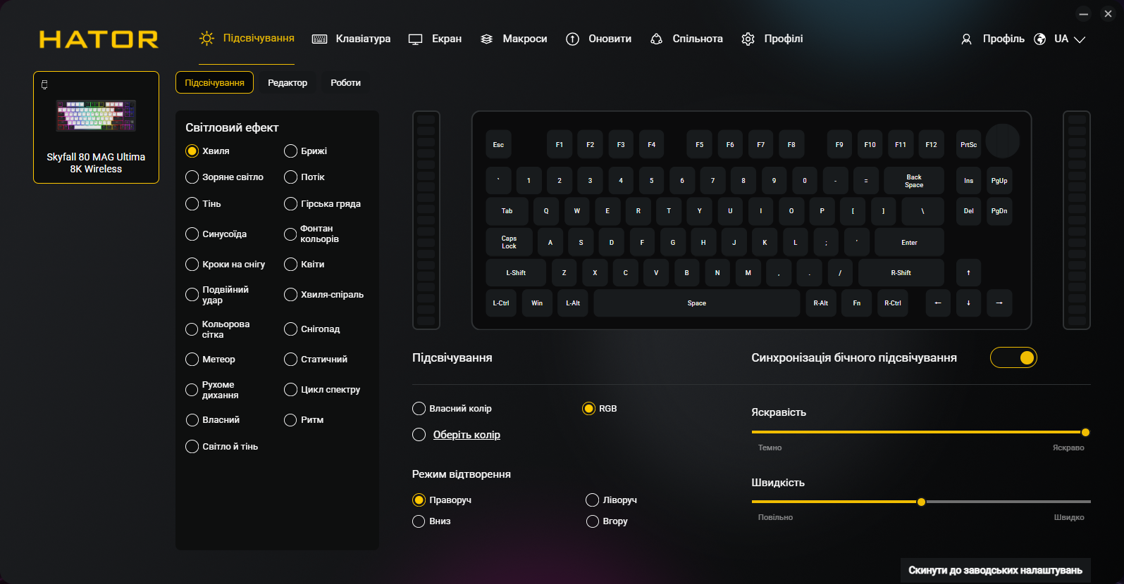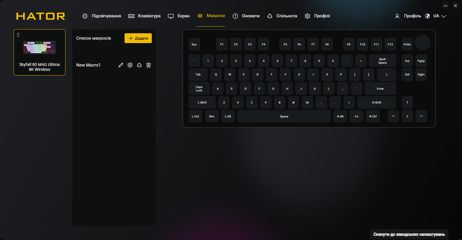 Кроме всех обычных функций типа переназначения клавиш и записи макросов, приложение позволяет программировать точку срабатывания и Rapid Trigger для каждой клавиши индивидуально, настраивать DKS, Mod Tap, Toggle и SOCD, управлять RGB-подсветкой и боковыми полосами, создавать и сохранять профили, настраивать функции регулятора громкости и TFT-экрана. Естественно, присутствует украинский (и английский) языки интерфейса.