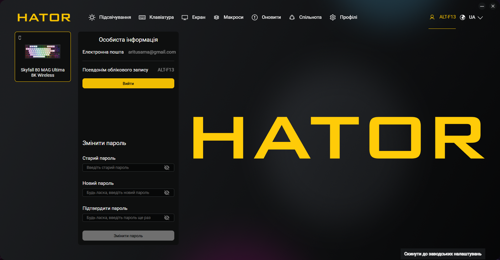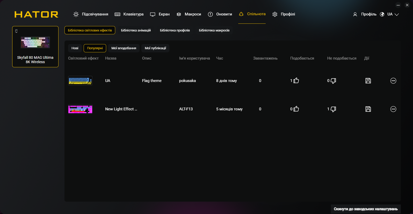 Профили могут сохраняться в памяти клавиатуры для использования без установленного ПО. Что очень интересно в перспективе — приложение предлагает «соцсетевые» функции для распространения профилей, режимов работы RGB и макросов. Это трудно оценить в первые дни работы новой программы, но со временем армия пользователей устройств HATOR сможет построить полноценную библиотеку полезных настроек. Для этого PC SyncHUB предлагает зарегистрировать пользователя, хотя без этого шага все остальные возможности остаются доступными, поэтому это — опционально.