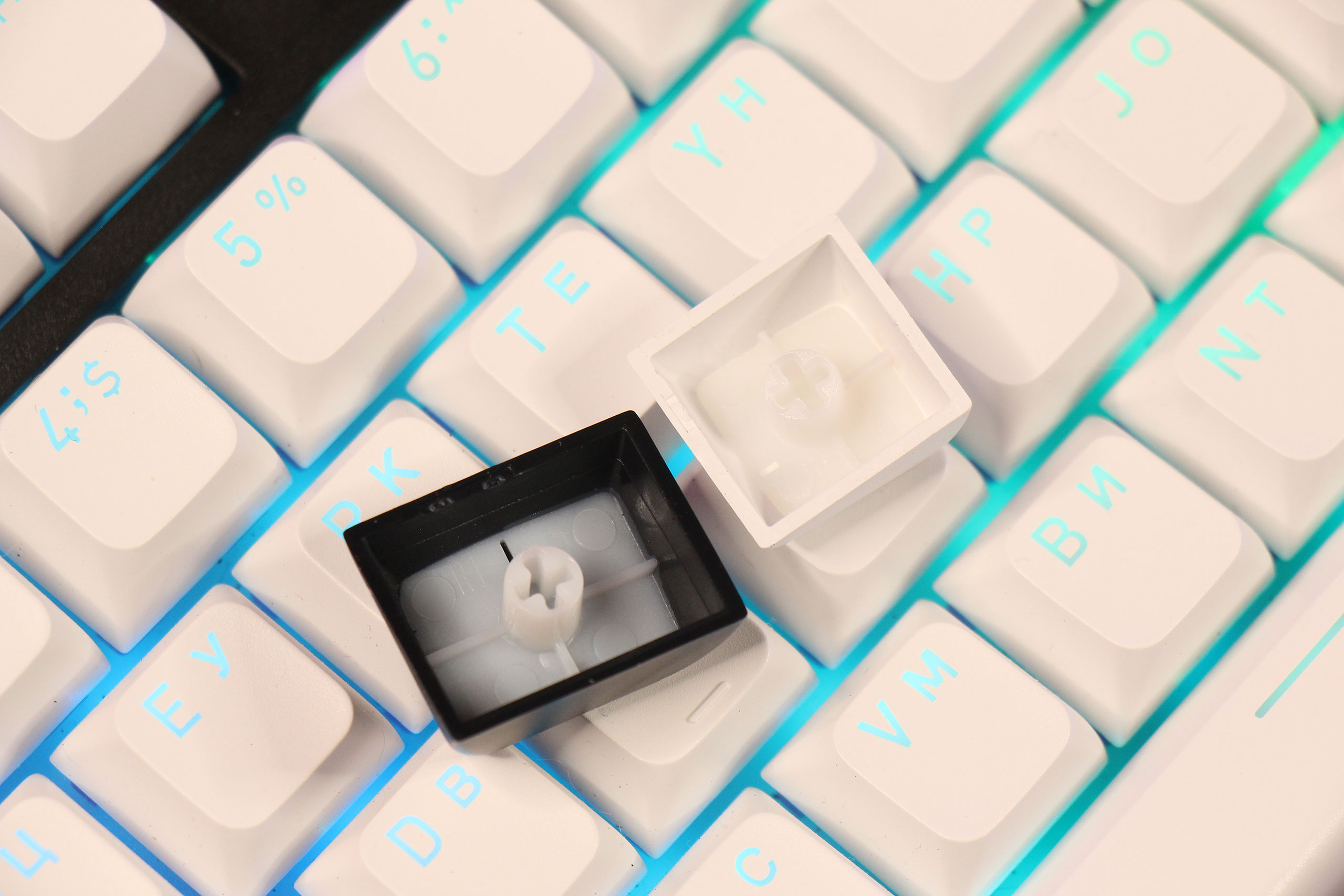 Одно из заметных изменений по сравнению с обычной Skyfall 80 Wireless заключается в материале кейкапов. Вместо ABS-пластика здесь используется PBT с двойным литьем (double-shot). PBT обладает лучшей устойчивостью к стиранию и засаливанию, а также более приятной матовой текстурой. Это логичное решение для клавиатуры премиум-класса. Профиль остался фирменным OMA, уникальным для HATOR.