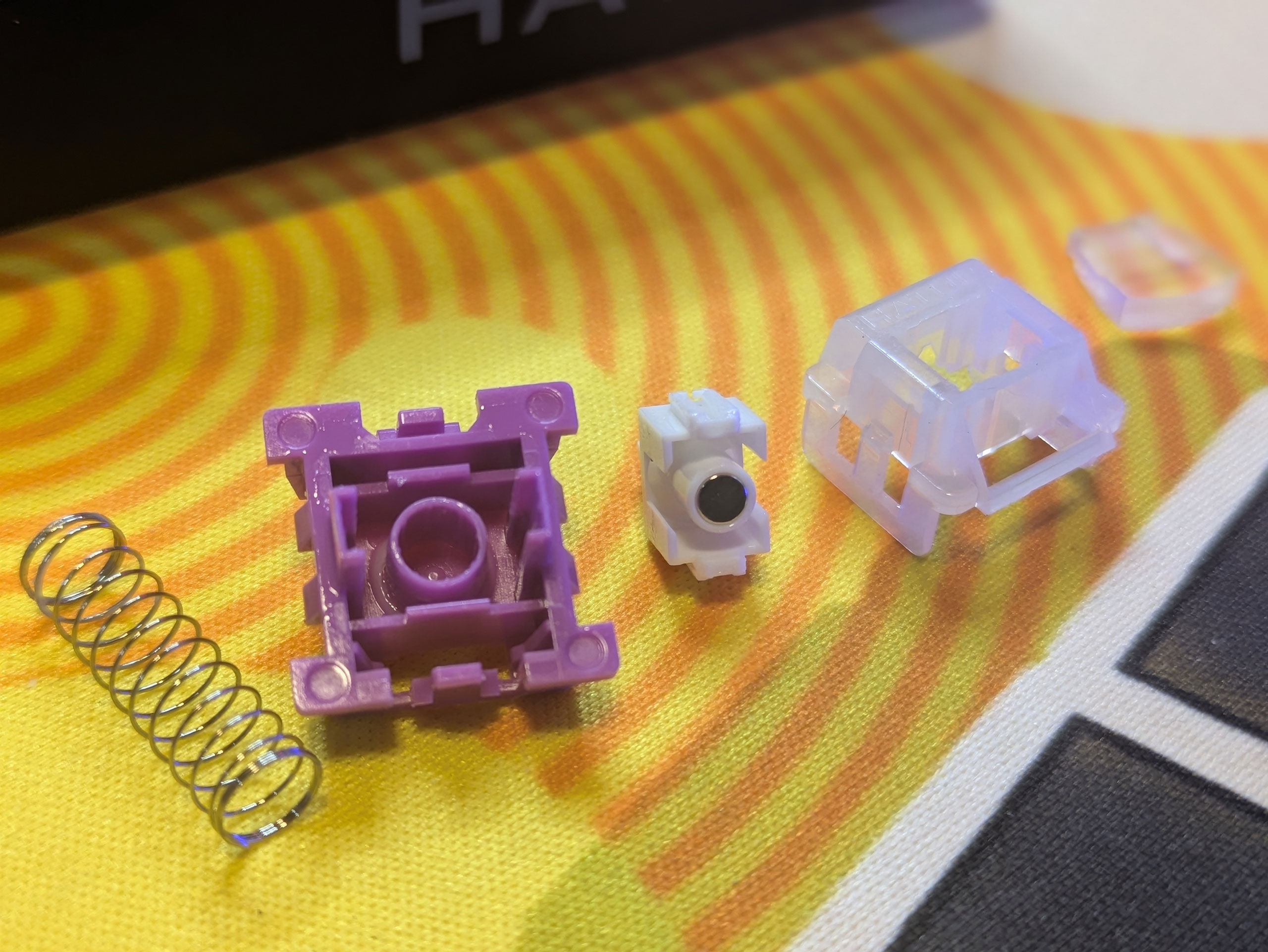 Клавиатура поддерживает hot-swap, то есть замену переключателей без пайки. Впрочем, в отличие от механических свичей, магнитные переключатели не являются универсально совместимыми между различными клавиатурами. HATOR даже на уровне программного обеспечения подтверждает совместимость своих магнитных клавиатур также с переключателями производства Gateron, а все остальное остается на эксперименты пользователей и не гарантируется.