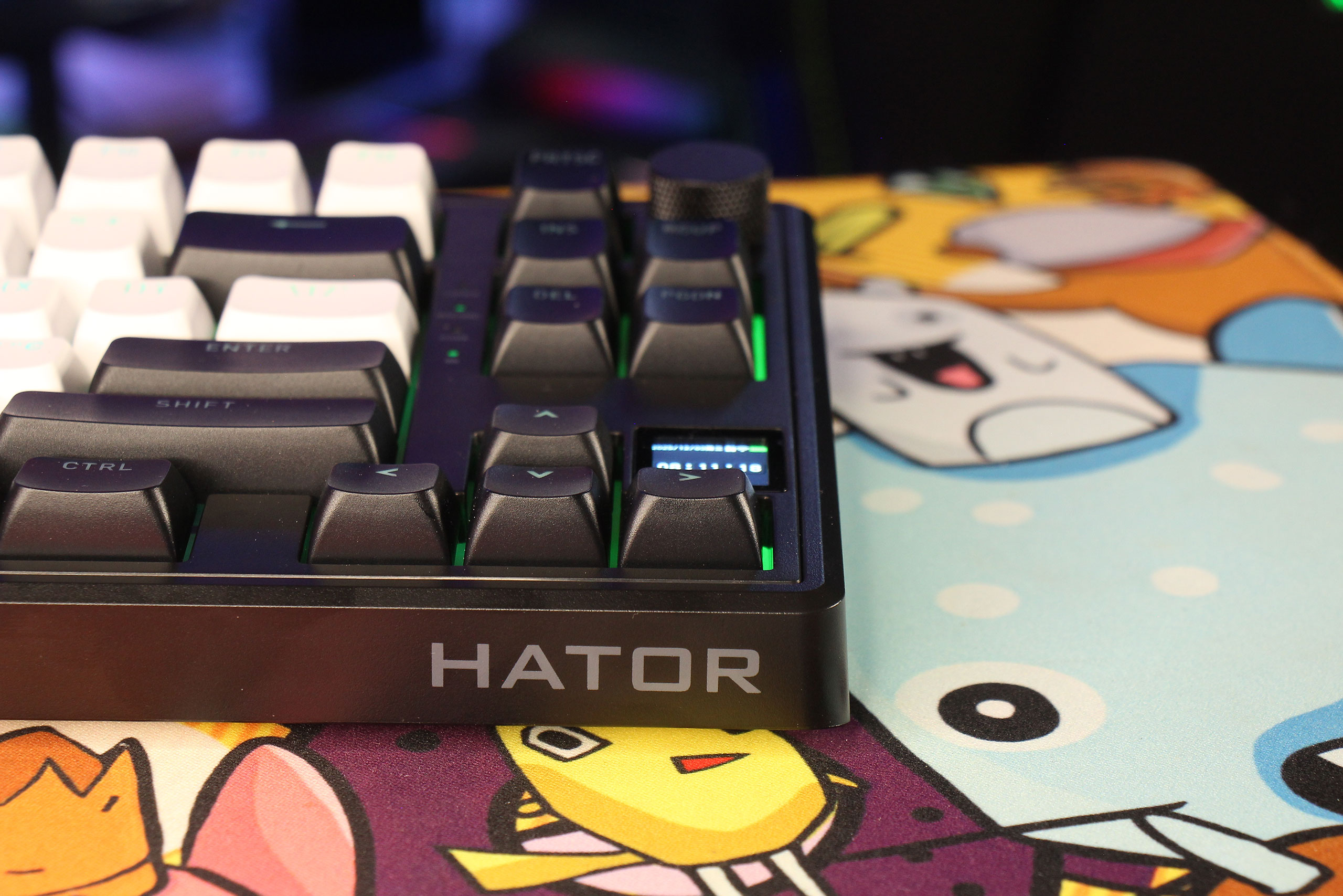 В комплекте присутствует фирменный новелти-кейкап с эмблемой HATOR, установка которого делает внешность устройства немного бодрее. Такой же шел в комплекте со Skyfall 80 Wireless, но, похоже, на других моделях линейки может предлагаться голубая версия вместо розовой: