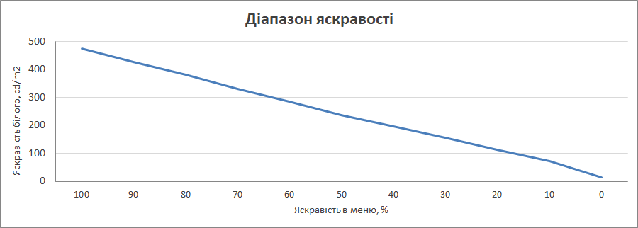 | Яркость белого, кд/м² | 380,8 | 425,1 | 457,2 | 460,7 | 471,1 | 244,4 | 144,7 | 140,1 | 357,6 | - | 476,1 | 474,4 | 470,6 | 119,8 |