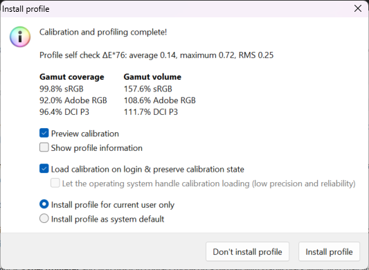 На приведенные результаты радикально влияет отключение Local Dimming у трех профессиональных профилей и активированный Night Vision в MOBA, ну а E-Book Mode просто черно-белый и проводить в нем замеры смысла нет.