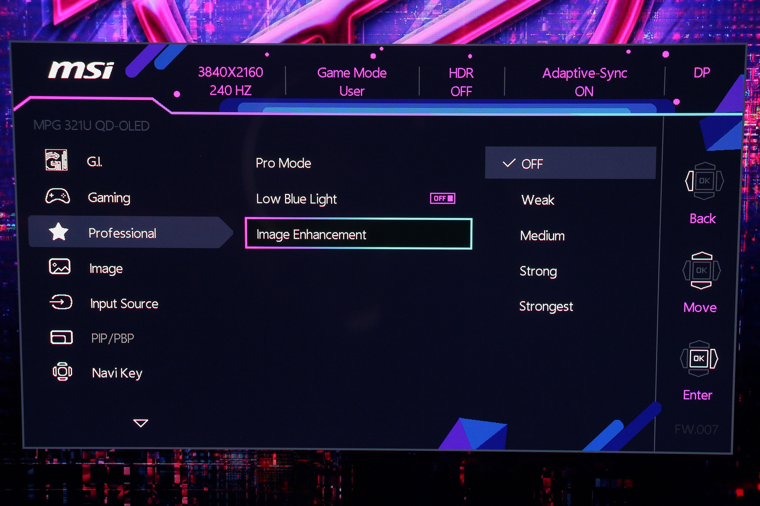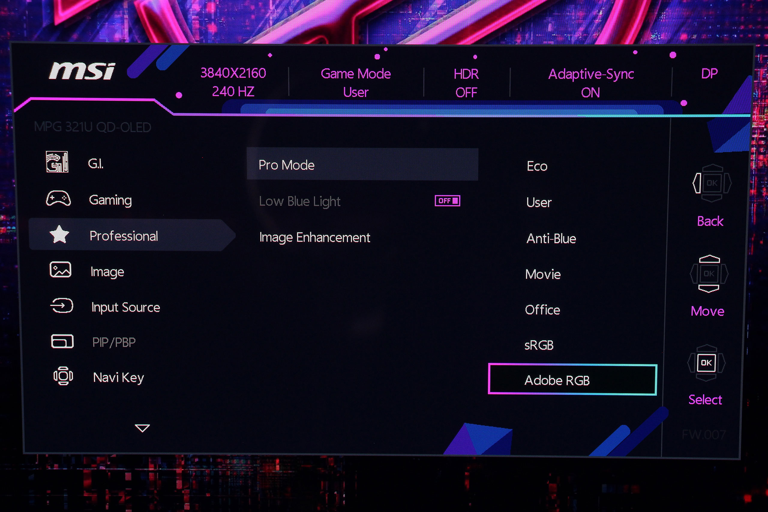 Соответственно, Professional Mode содержит инструменты для профессиональной работы с цветом, но их здесь немного: выбор профилей, режим уменьшения голубого света и Image Enhancement.