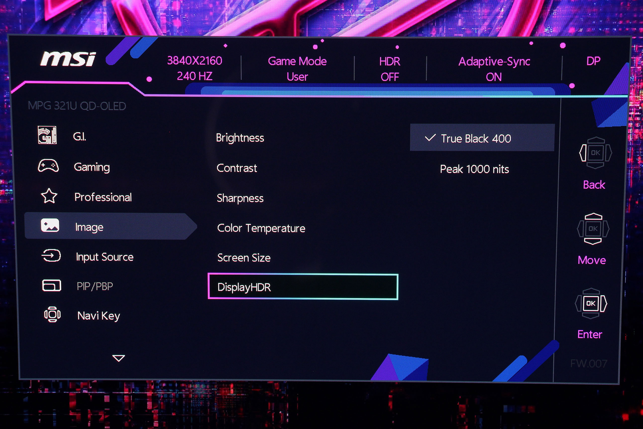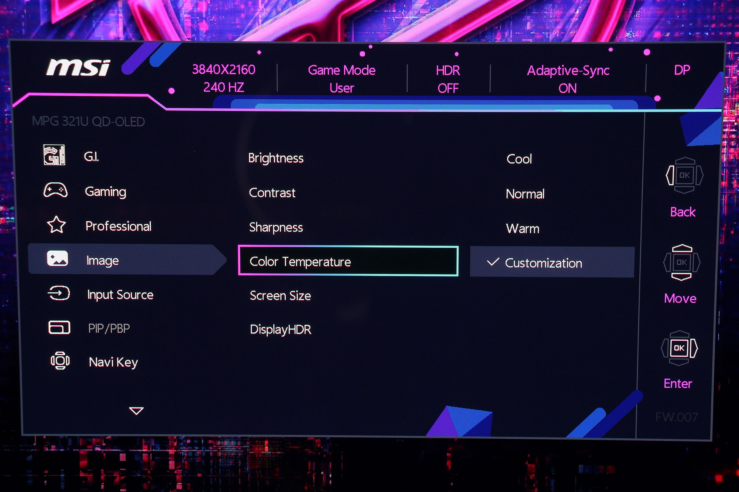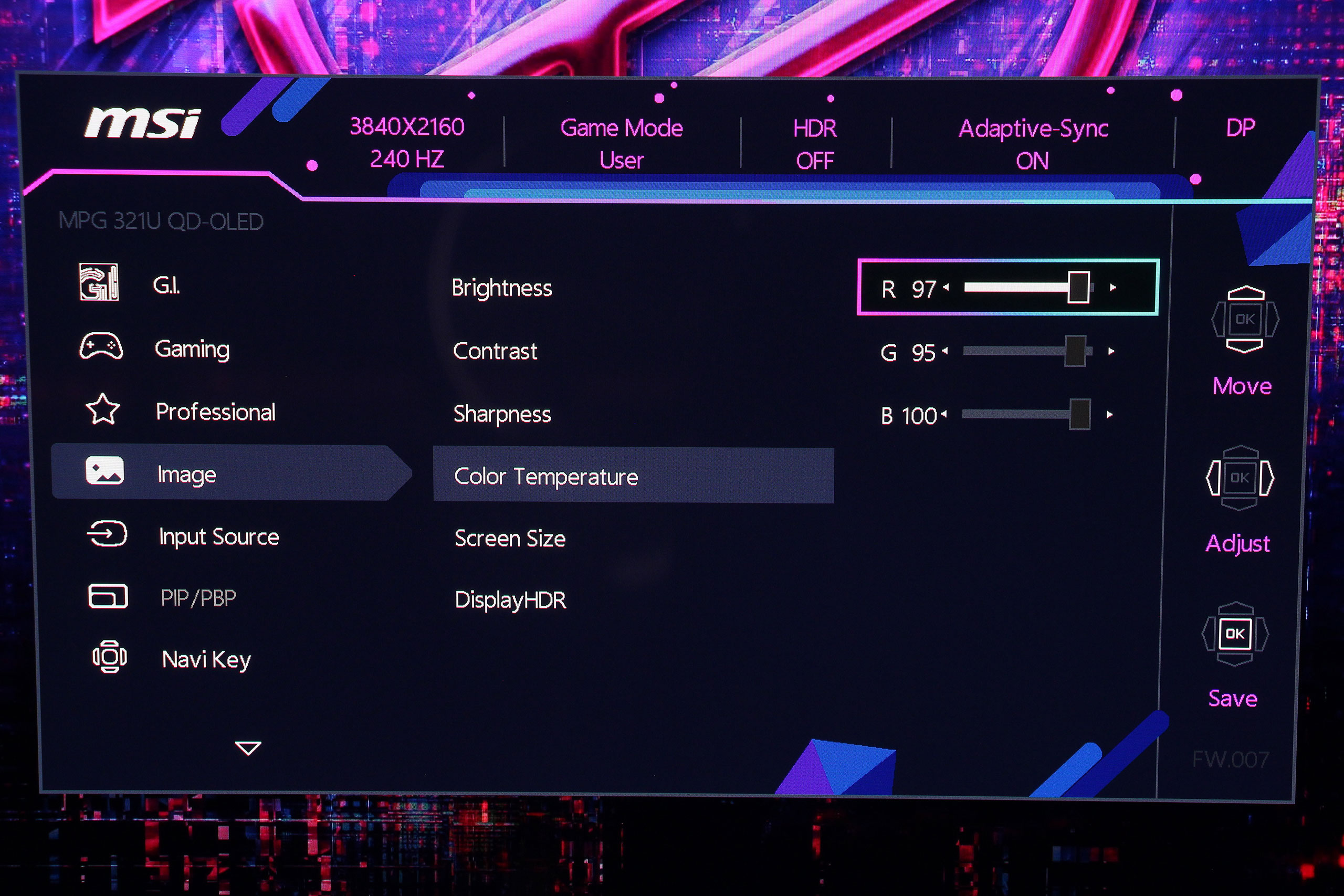 А вот в разделе Image собраны базовые параметры качества изображения: яркость, контрастность, резкость Также доступны различные режимы цветовой температуры и ее настройки по трем каналам для точного воспроизведения оттенков. В этой же вкладке включается HDR и есть возможность ограничить видимый размер дисплея.