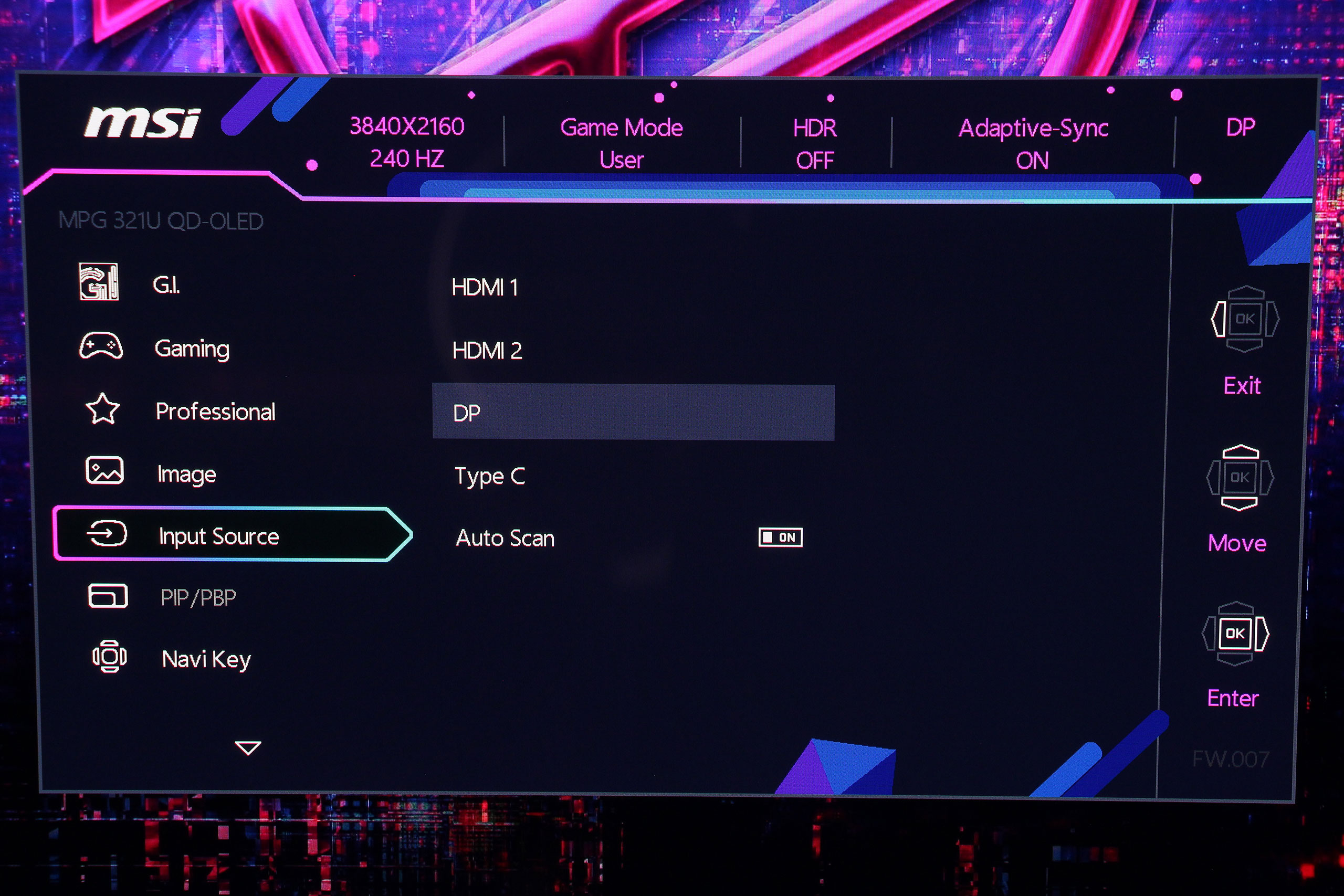 Input Source позволяет быстро переключаться между источниками сигнала и управлять KVM-переключателем. Также доступны настройки режимов Picture-in-Picture (PIP) и Picture-by-Picture (PBP) для одновременного отображения контента из нескольких источников (активизируется только при фактическом подключении двух или более источников к монитору). Вкладка Navi Key позволяет настроить поведение клавиш.