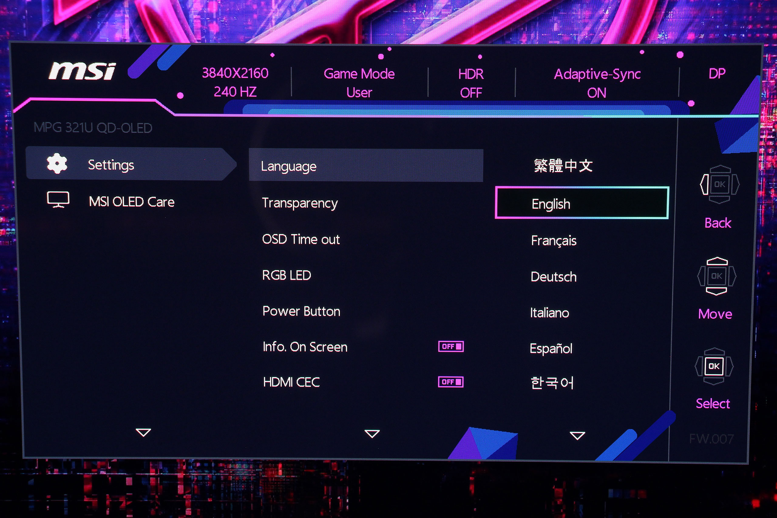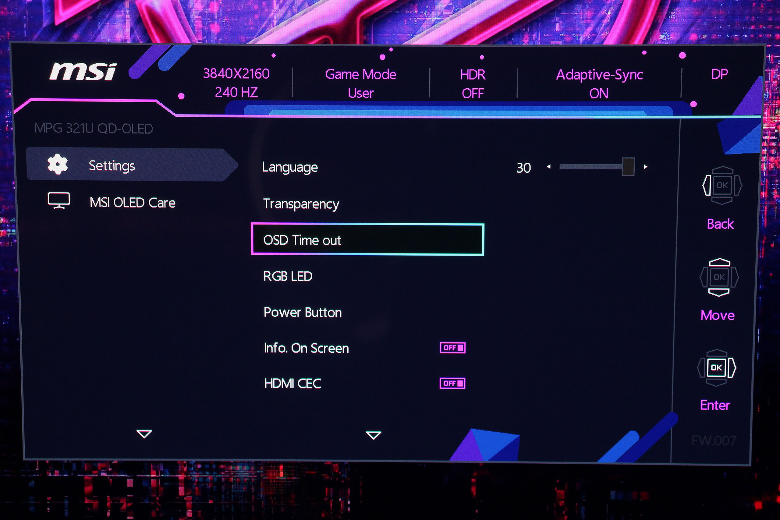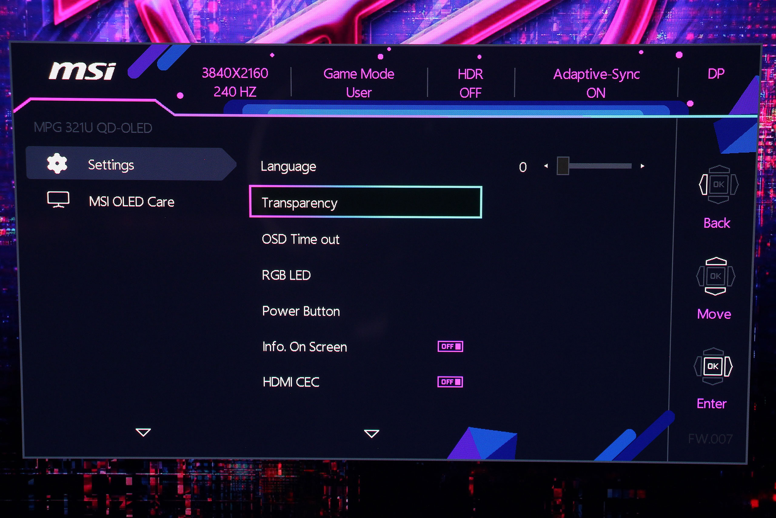 OLED Care объединяет все функции защиты панели от выгорания. Система включает Pixel Shift, незаметно смещающий изображение на несколько пикселей для предотвращения статической нагрузки на отдельные участки, Panel Protect — цикл восстановления пикселей для очистки панели и восстановления равномерности, Static Screen Detection для автоматического затемнения статических элементов интерфейса после определенного периода бездействия, а также Taskbar Detection для распознавания и защиты области панели задач Windows.