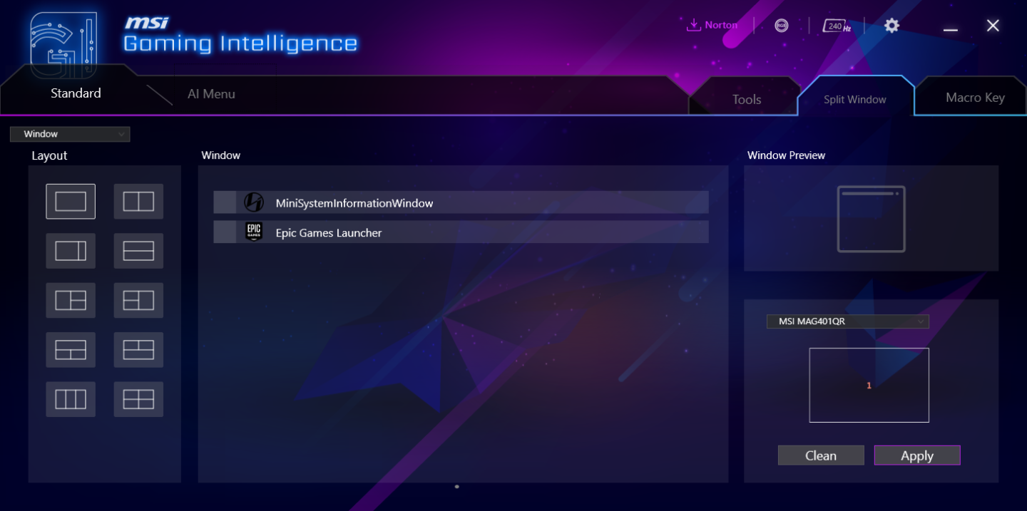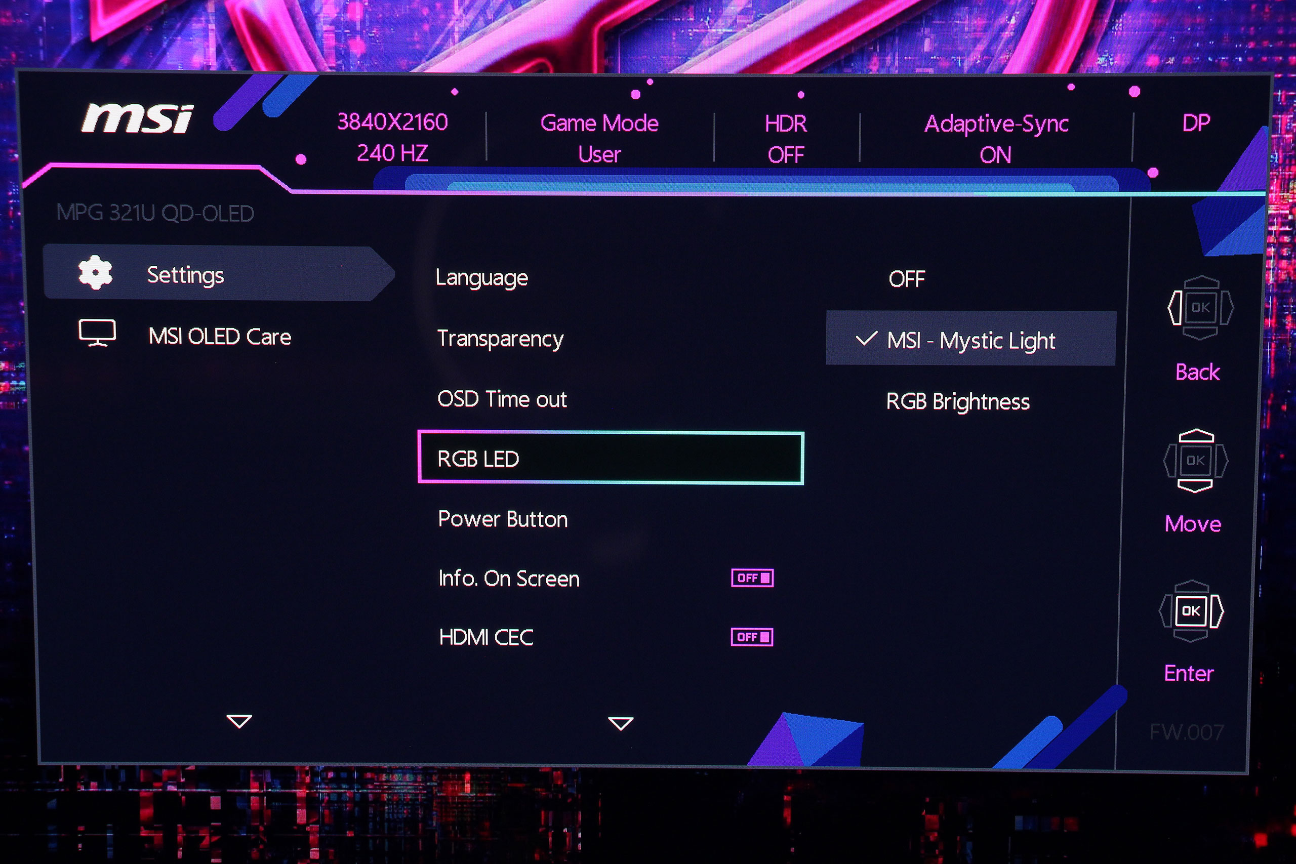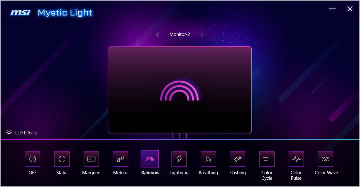 Отдельным модулем сделано управление подсветкой MSI Mystic Light: