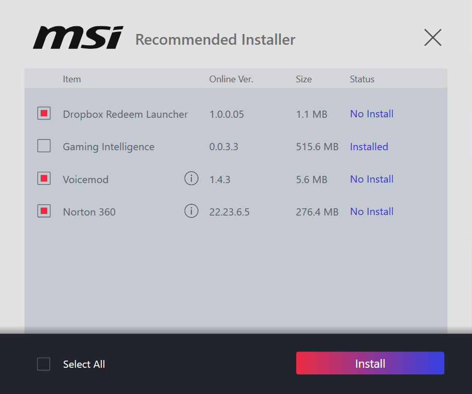 MSI предоставляет утилиту Gaming Intelligence для управления монитором через компьютер. Программа требует USB-подключения и автоматически распознает монитор при первом запуске, предлагая установить драйверы и дополнительное ПО.