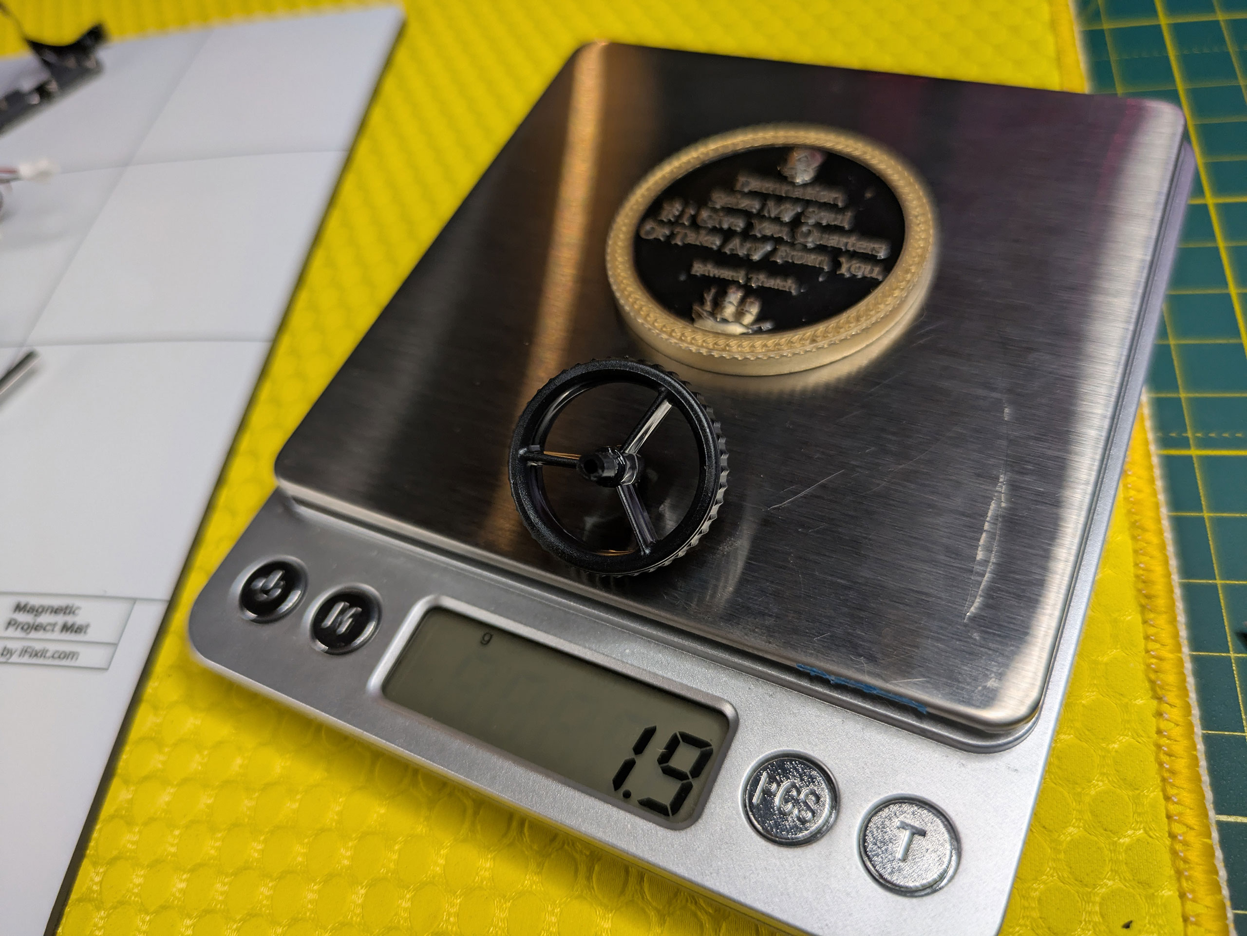 Шаг 2 — Установка магниевого колесика (опционально): При наличии магниевого колесика в комплекте — снять стандартное колесико, собрать магниевое с помощью штифта, установить в энкодер и проверить плавность вращения.