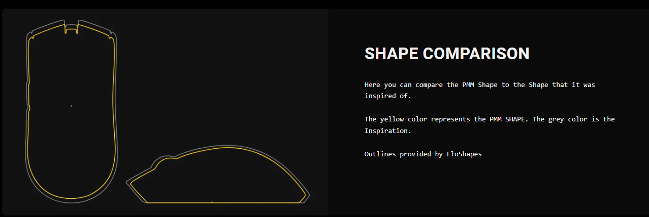 PMM сохраняет оригинальную форму V3 Pro, которая уже оптимизирована для различных стилей хвата и получила множество положительных отзывов игроков. Так что по сравнению с еще более легкими, но компактными или совсем экзотическими конструкциями, уменьшение веса не влияет на «статическое» удобство держания, но значительно уменьшает усталость при интенсивном использовании. Кистевая усталость, характерная для длительных соревновательных сессий, практически исчезает.